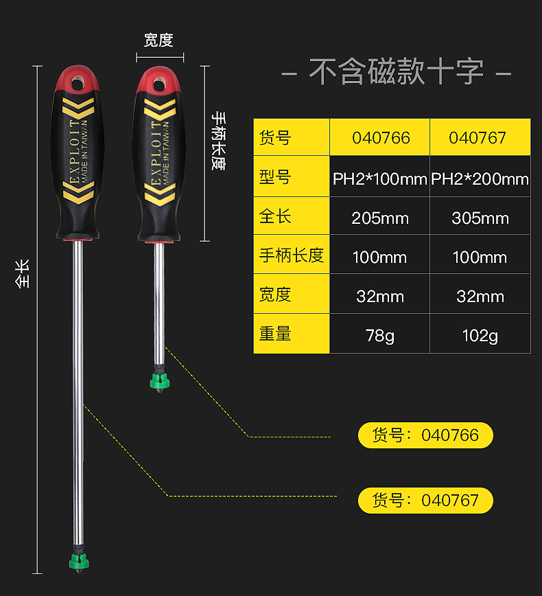 开拓 台湾制造多规格一字/十字发黑头螺丝刀 起子改锥 040751