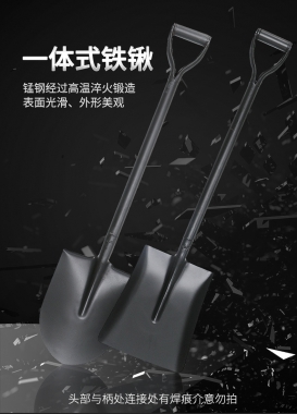 开拓 家用锰钢加厚连体铁铲 圆头/方头加长农用铁锹 园林植树工具