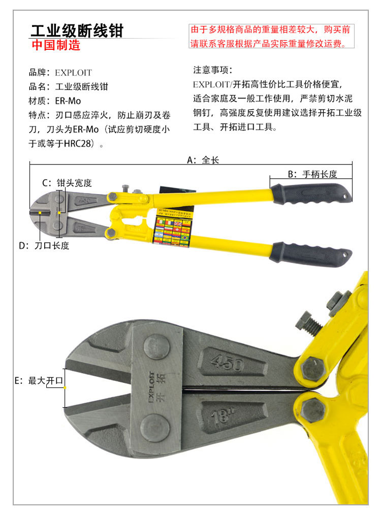 开拓 断线钳 电缆剪刀 老虎钳 省力钳 钢丝钳 线缆剪 012405