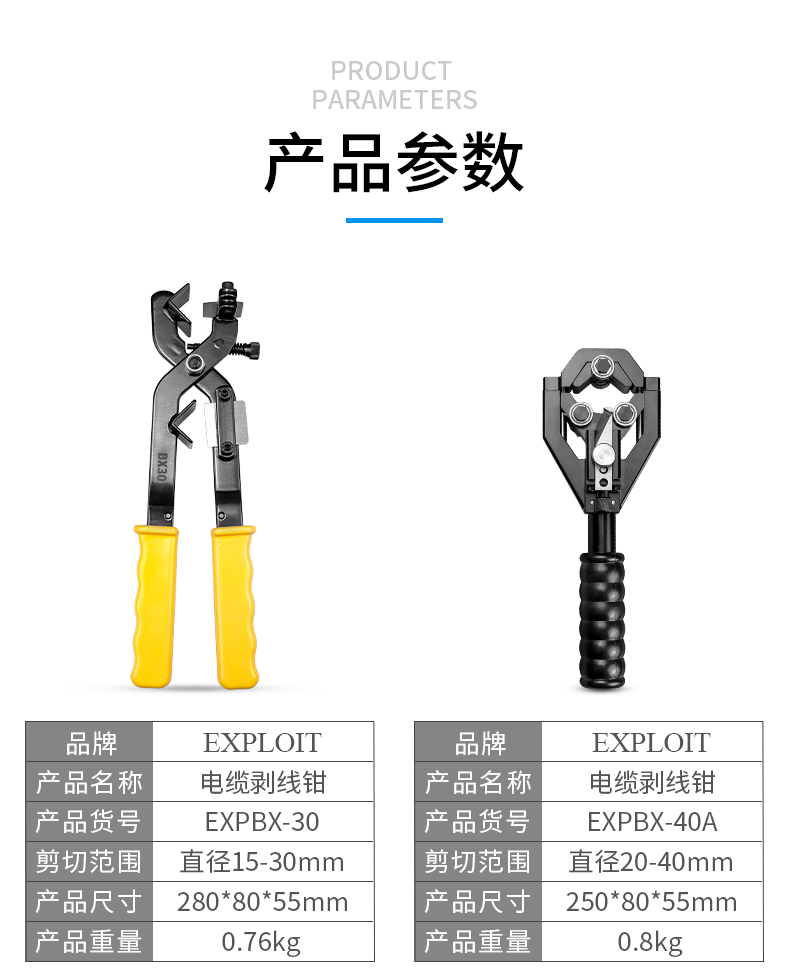开拓 高压电缆剥皮器多功能半导体剥线钳 绝缘层剥皮刀 EXPBX-40A