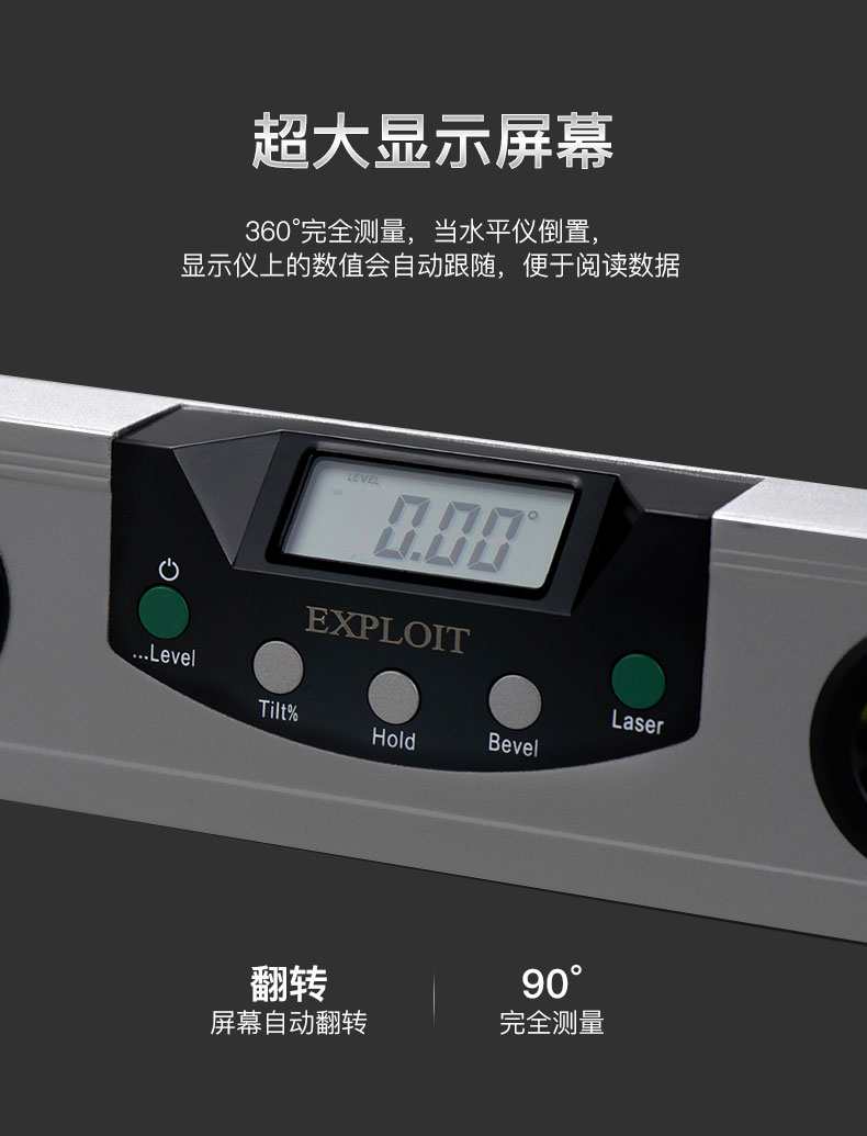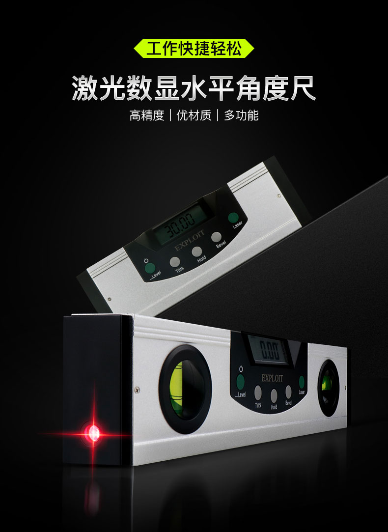 开拓高精度电子数显水平尺红外线激光打线角度测量铝合金磁性靠尺