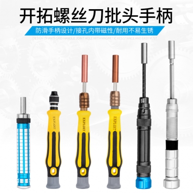 开拓精密螺丝刀手柄可调自锁棘轮4mm批头铝合金小改锥起子手柄把