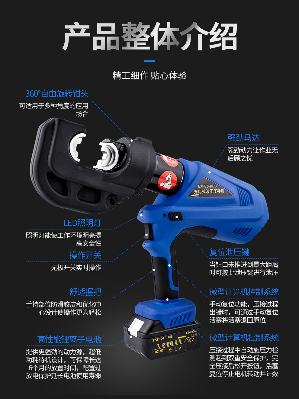 开拓电动液压钳电缆小型压线钳电工专用锂电充电式端子钳钳子工具
