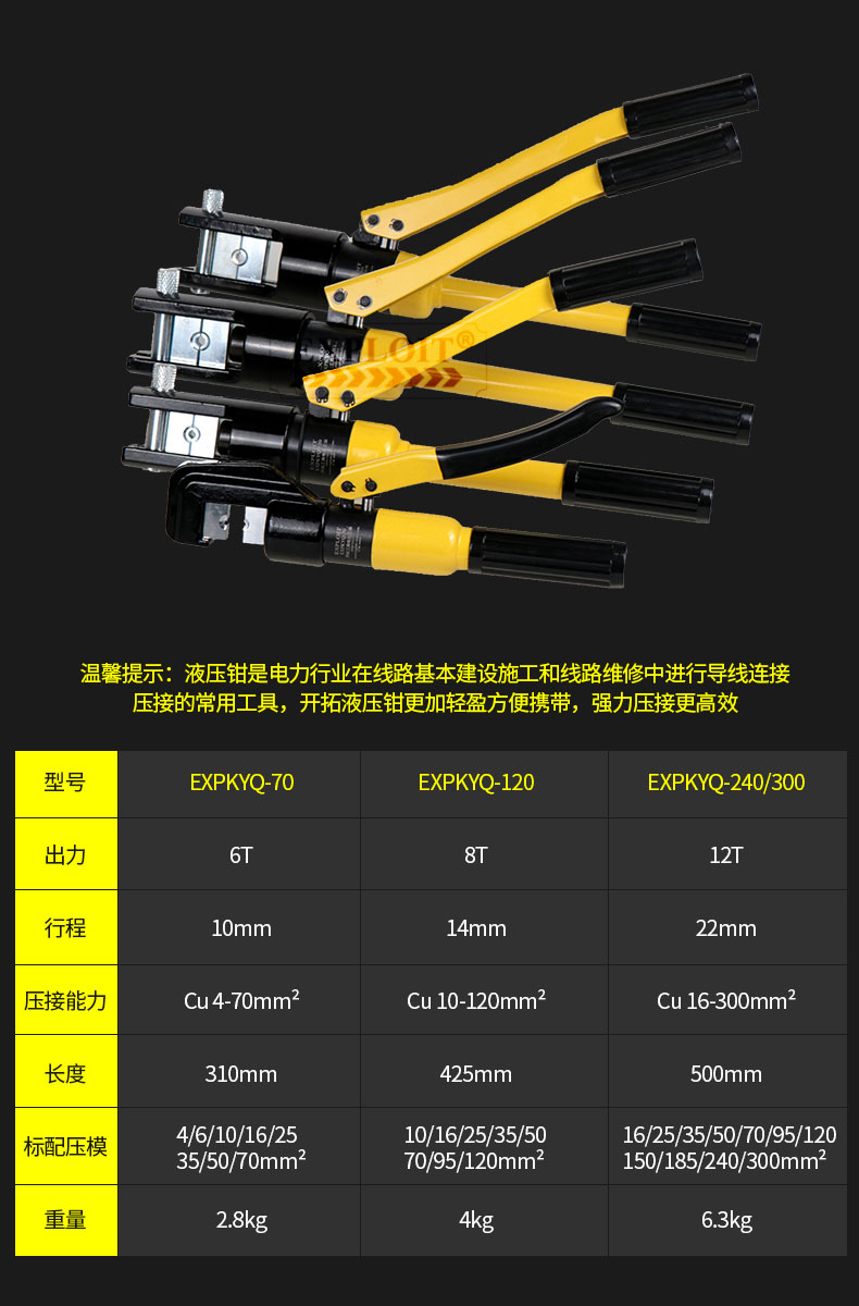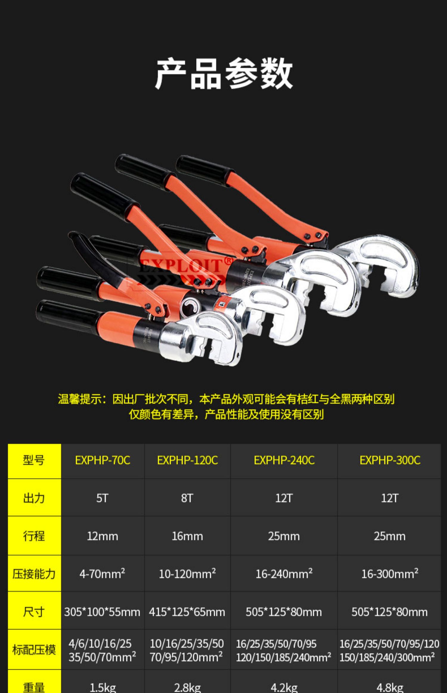 开拓4-300mm2手动省力快速液压压接钳冷压端子钳压线钳 EXPHP-70C