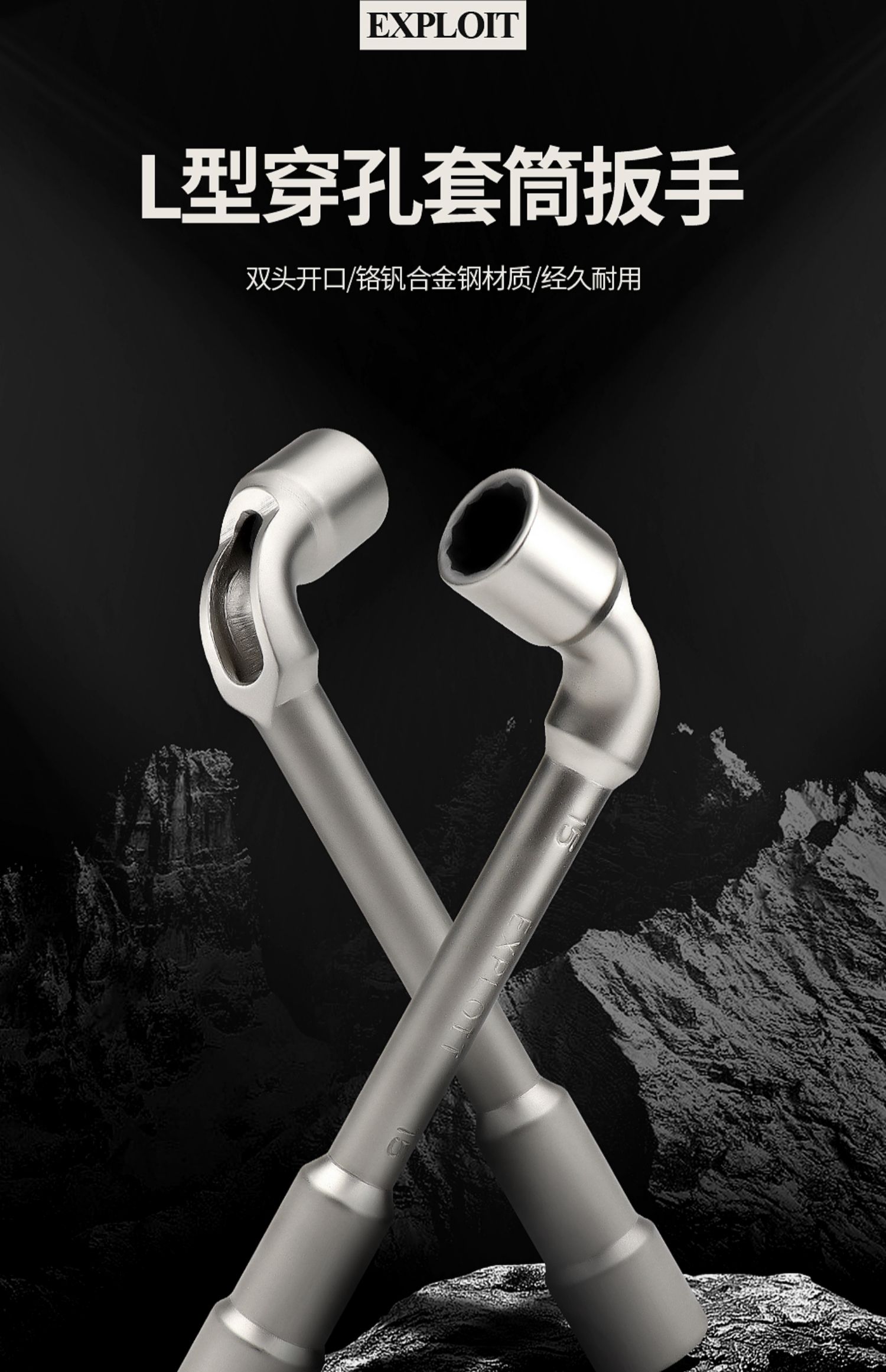 开拓L型套筒扳手烟斗双头弯头穿孔7字外六角9-15mm扳手汽修工具