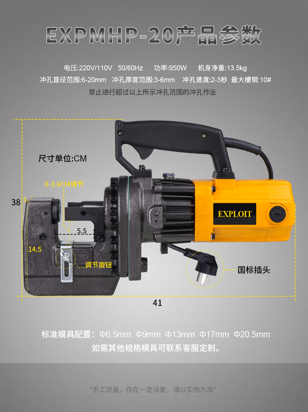 开拓 6-20mm电动液压不锈钢冲孔机冲孔器 开孔机开孔器 EXPMHP-20