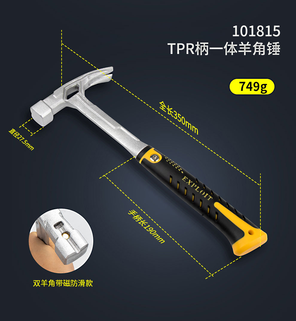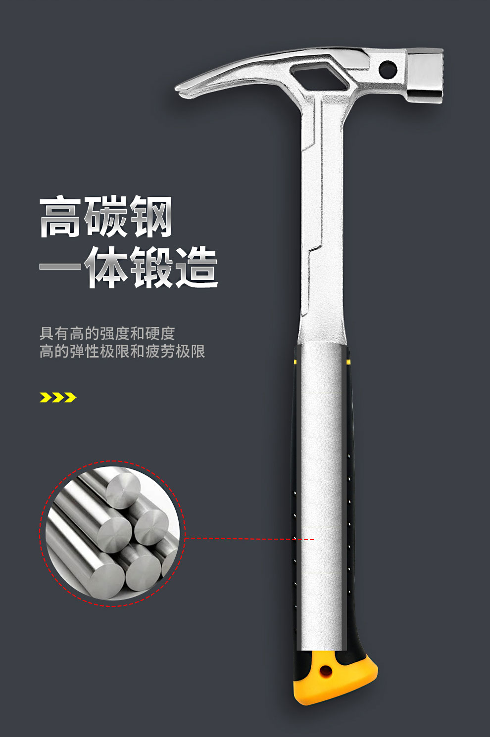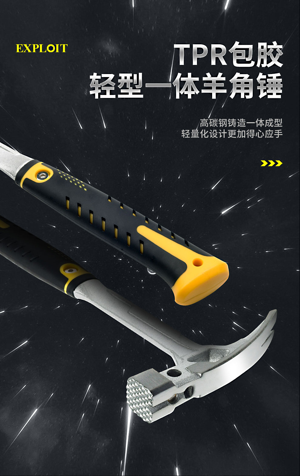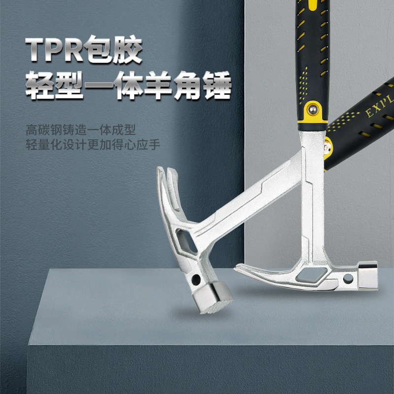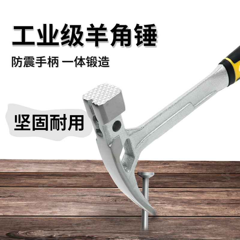 开拓羊角锤高碳钢一体成型带磁铁家用电工木工专用榔头铁锤锤子