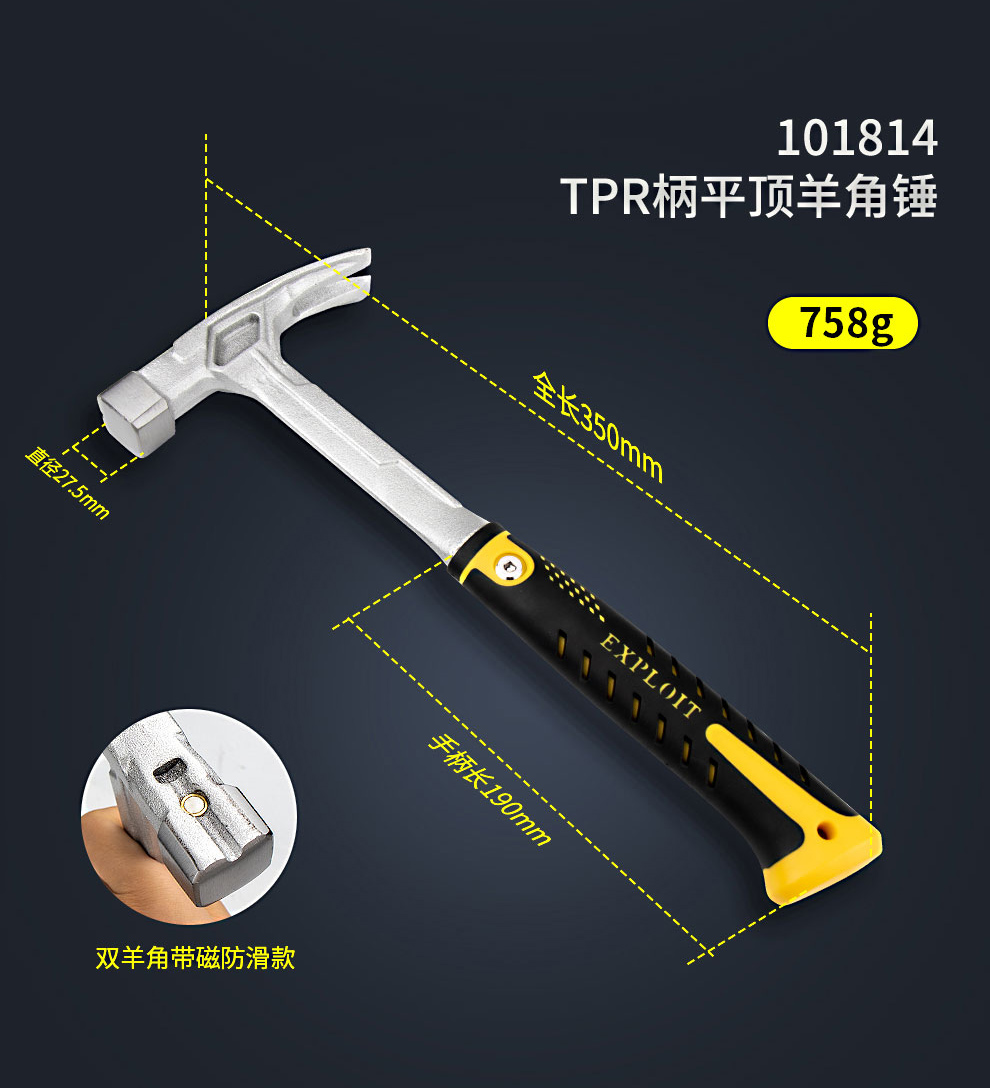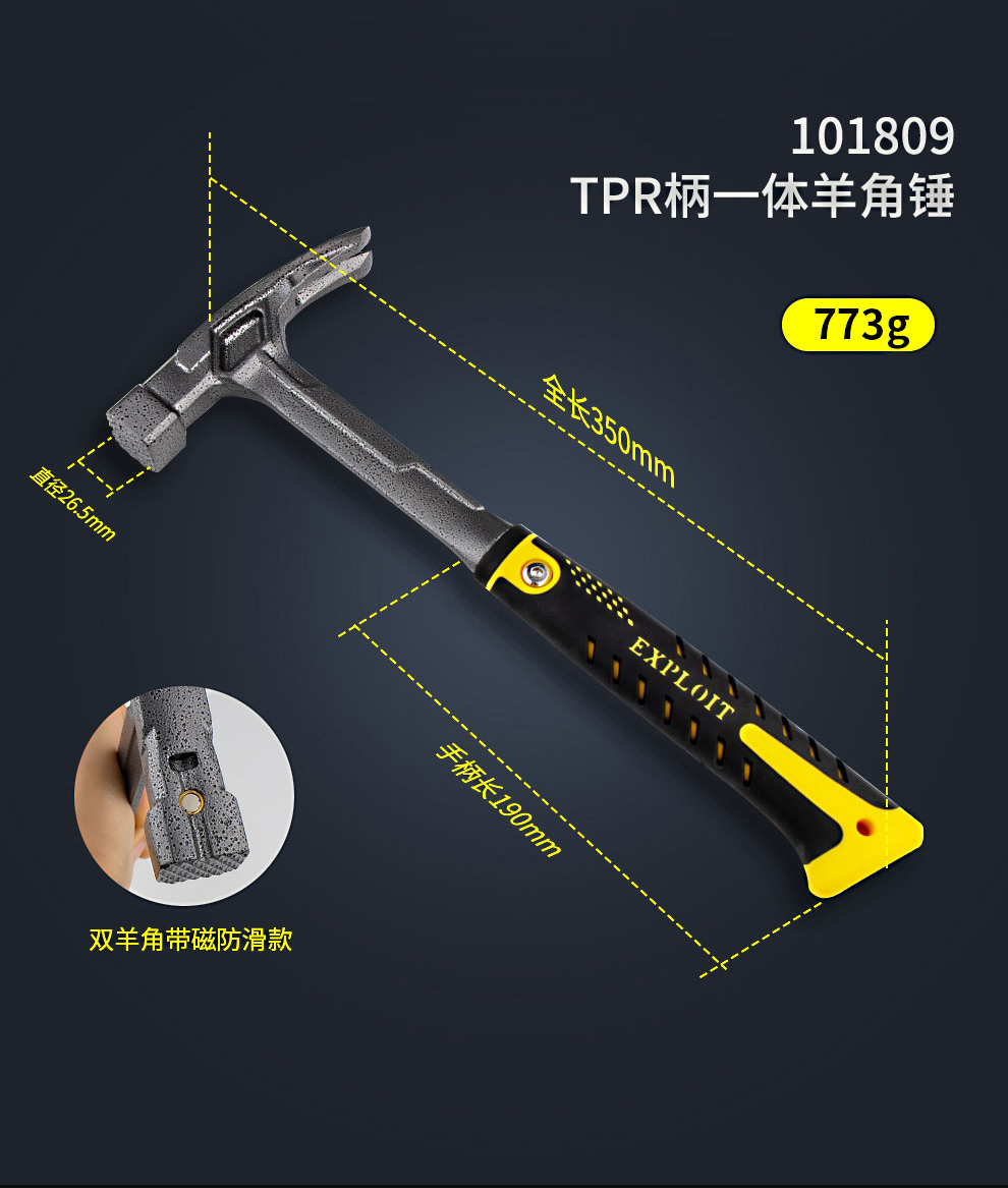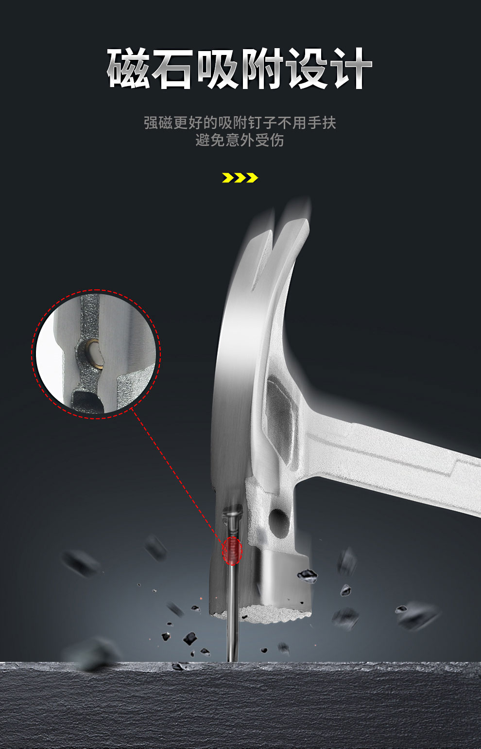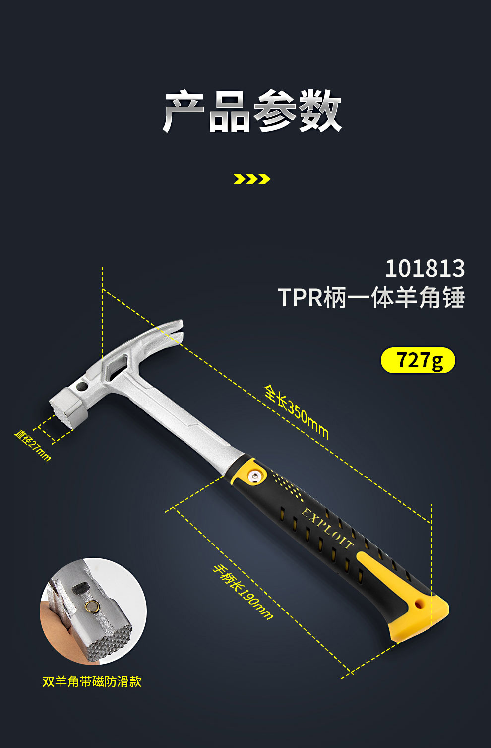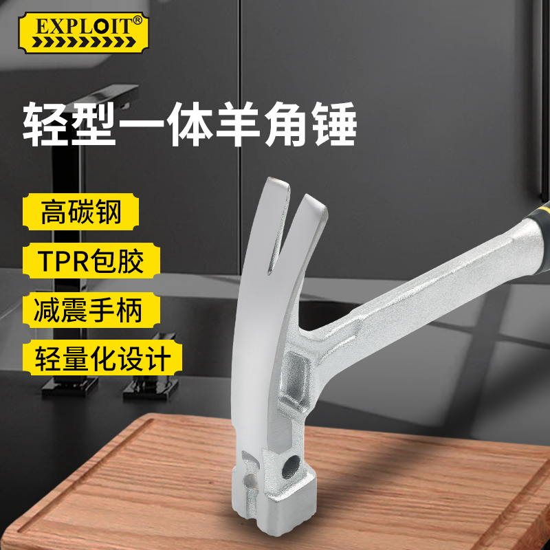 开拓羊角锤高碳钢一体成型带磁铁家用电工木工专用榔头铁锤锤子