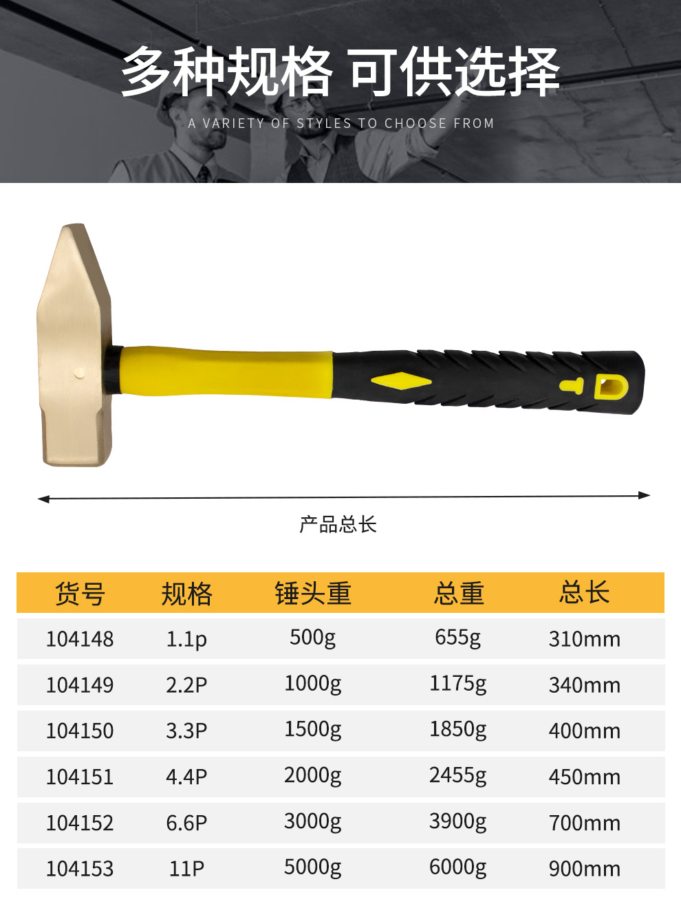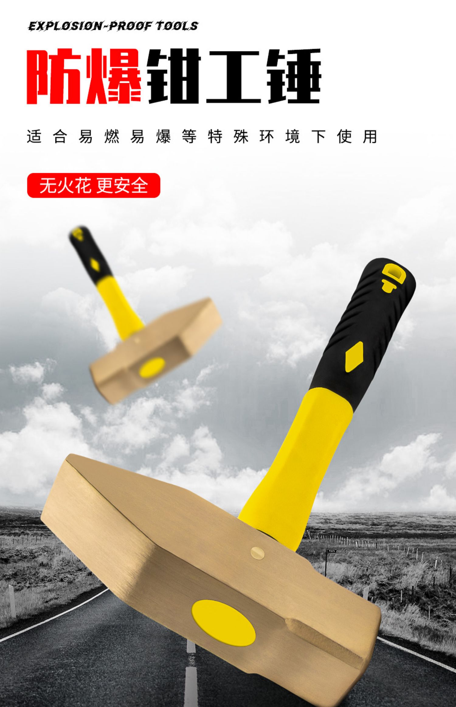开拓防爆钳工锤无火花铝青铜纯铜大锤小锤防爆工具榔头铜锤子
