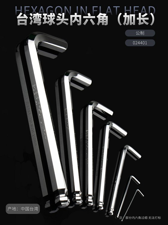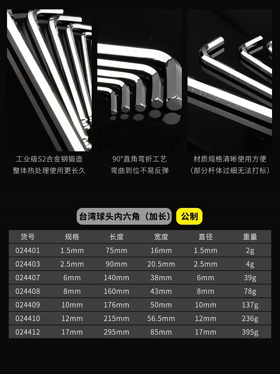 开拓台湾制造内六角扳手单支1.5号 2.5 6 8 12mm加长球头S2内六方