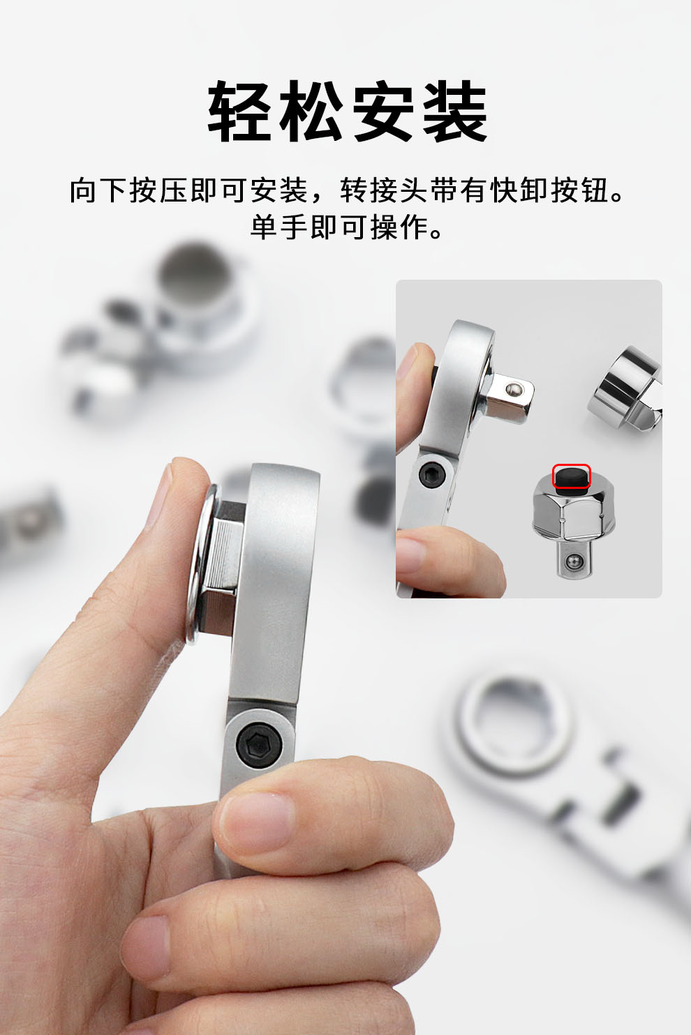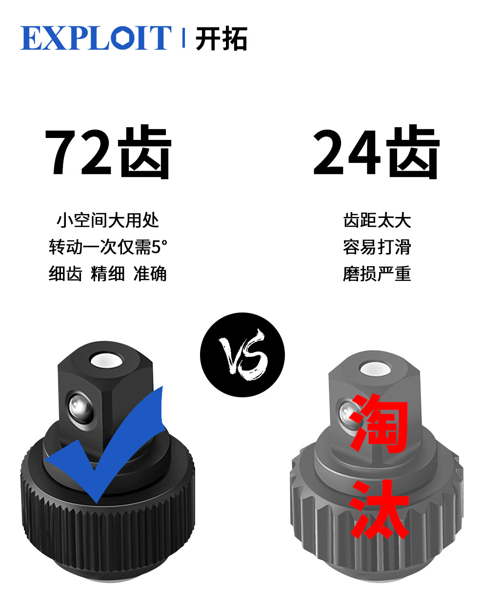 开拓棘轮套筒套装组合狭小空间万能双向快速汽修工具套筒扳手套装