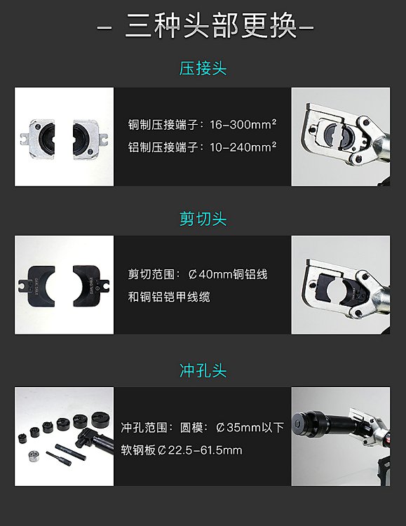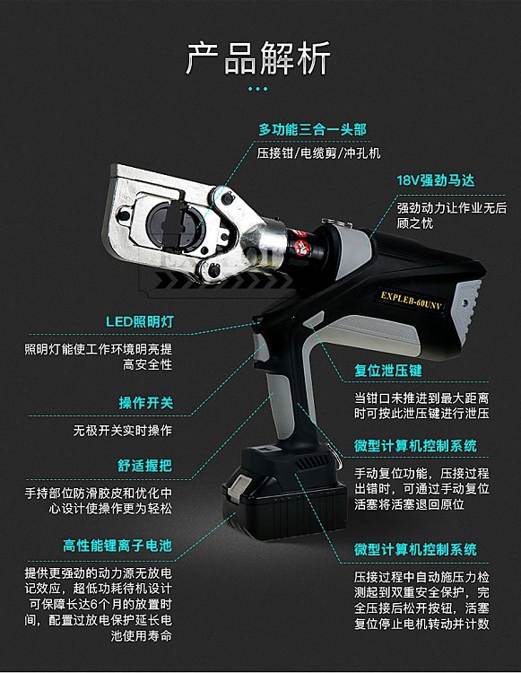 三合一可换头多功能充电式电动压接钳/电缆剪/冲孔机 EXPBZ-60UNV