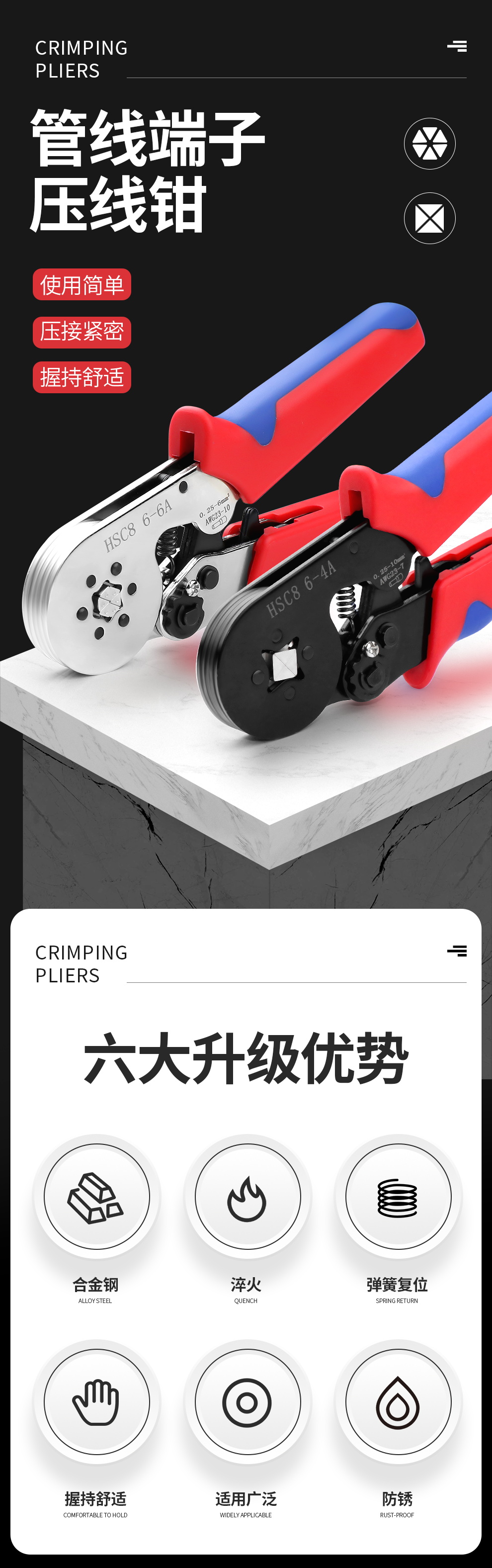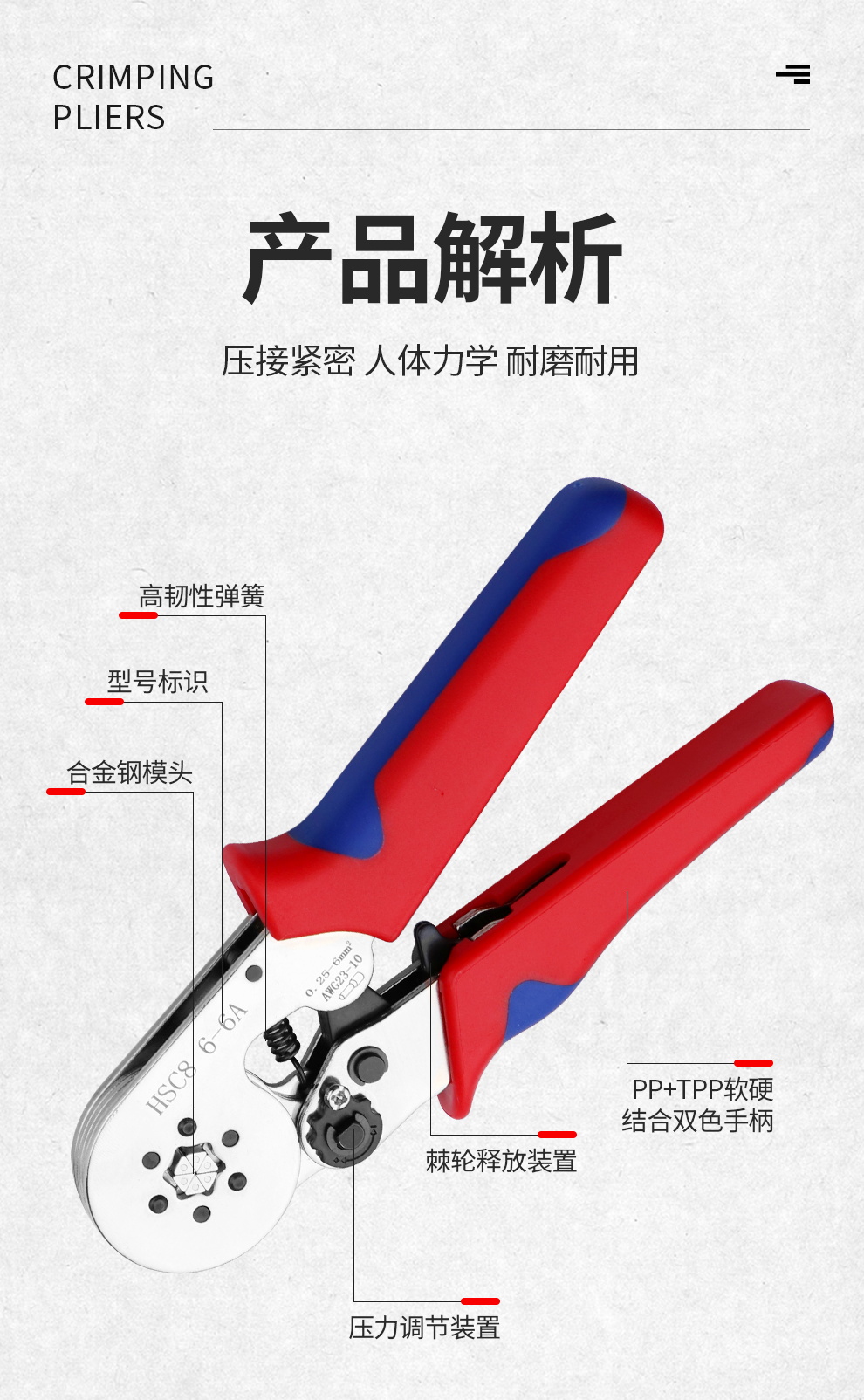 开拓 棘轮式杜邦/针形/绝缘/视频端子压接钳 压线钳 冷压钳