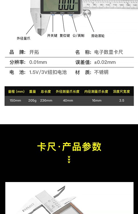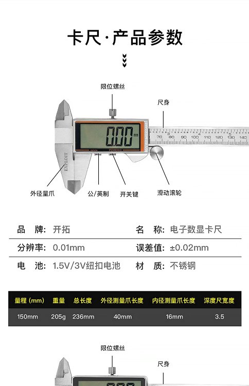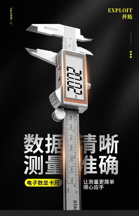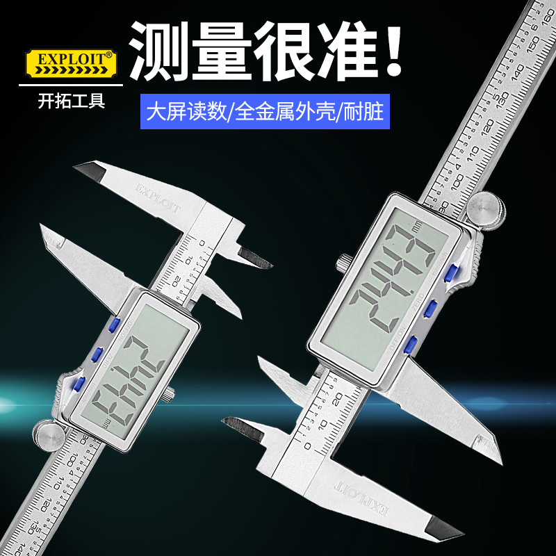 开拓数显电子游标卡尺高精度油标不锈钢工业级200mm150带表300