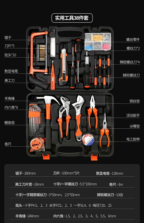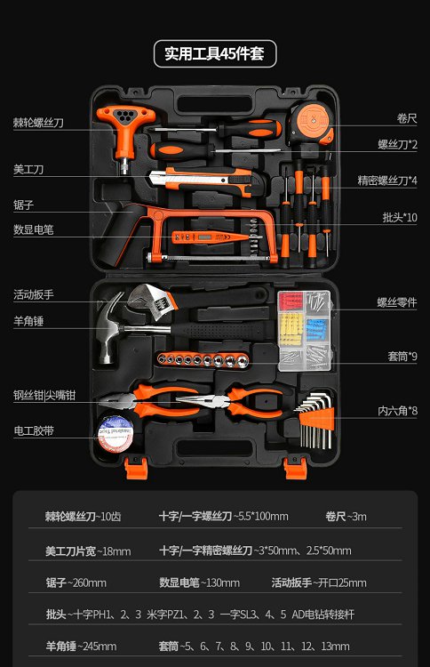 家用工具箱家庭维修老虎钳螺丝刀锤子修理大全全套五金组合套装