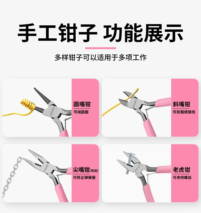 迷你手工钳子小尖嘴钳无齿弯嘴圆嘴珠宝老虎钳加长型饰品diy5寸