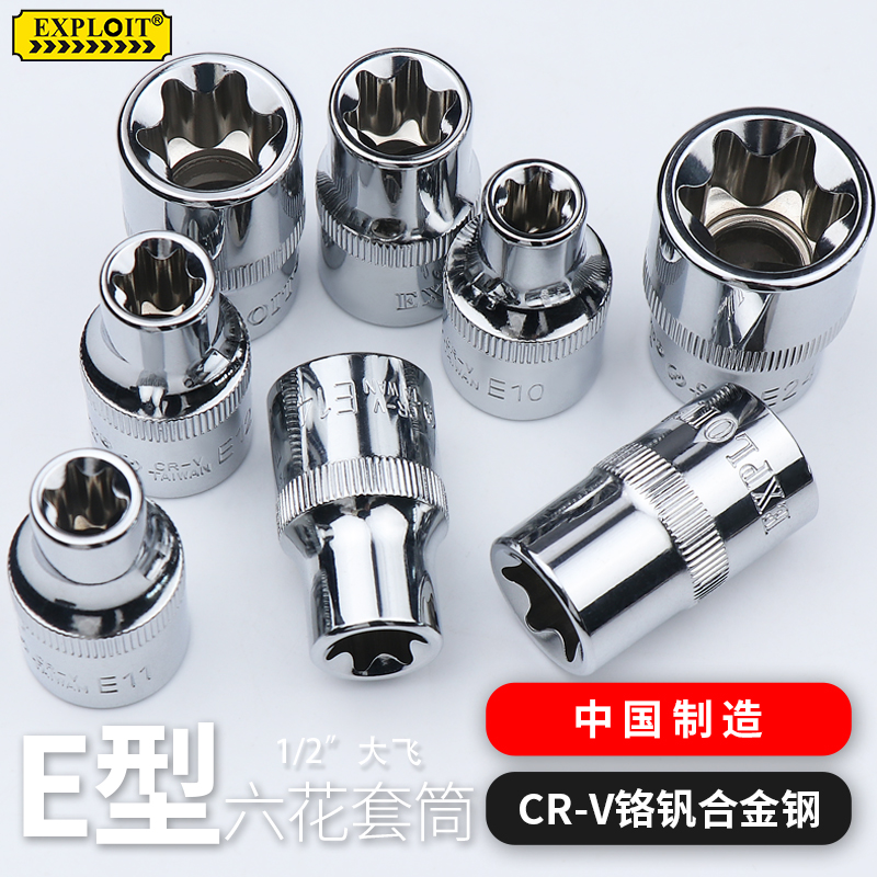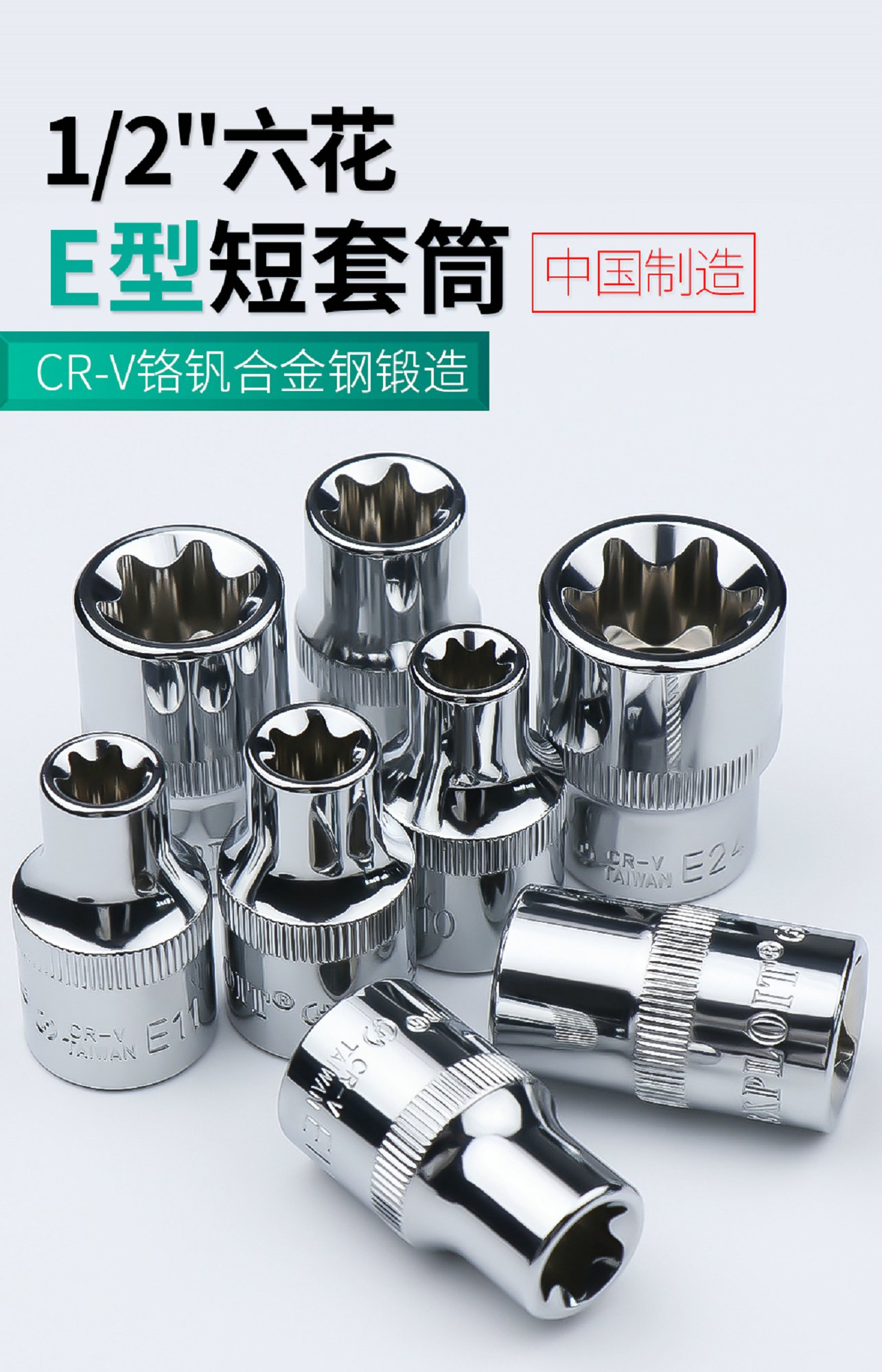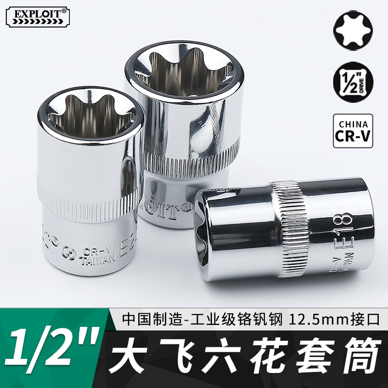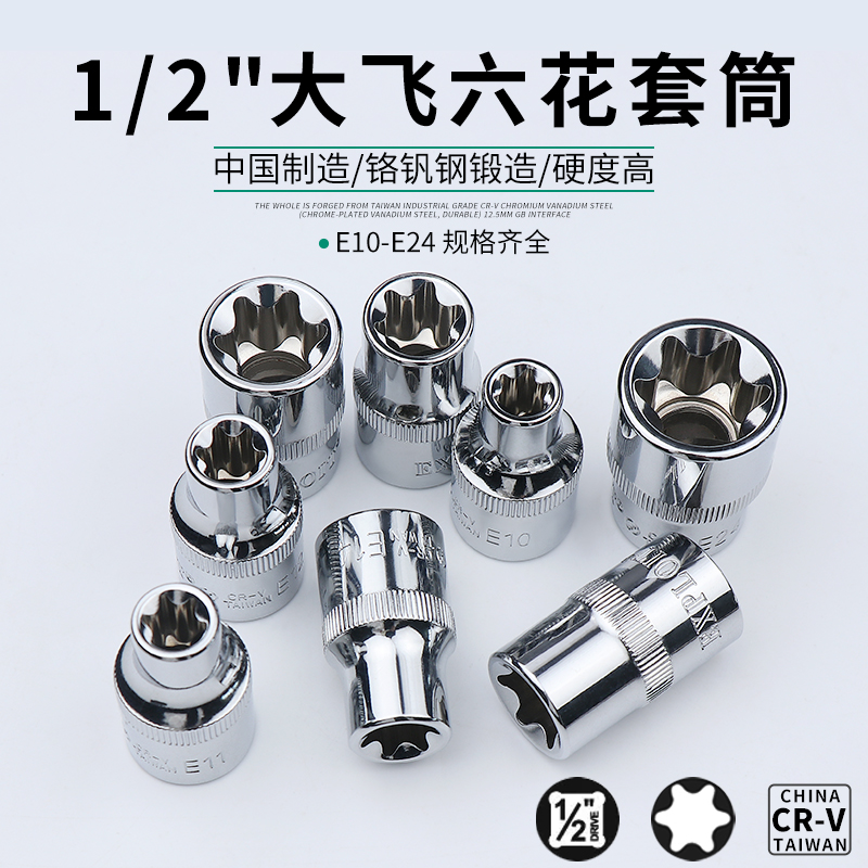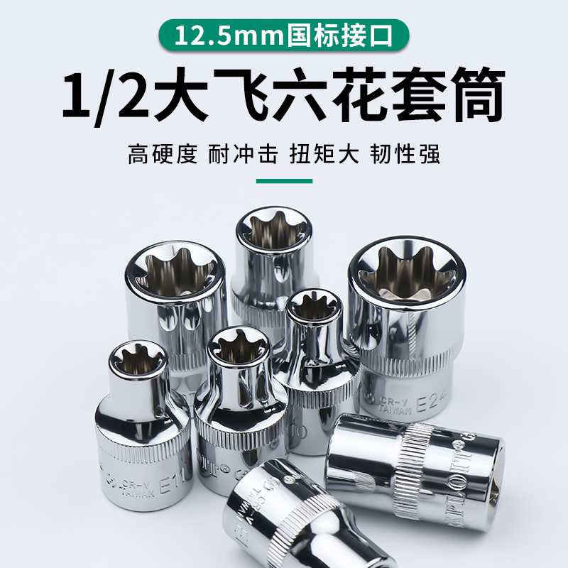 开拓1/2大飞e型6角套筒头花键梅花星型e12E10e14六角扭力扳手批头