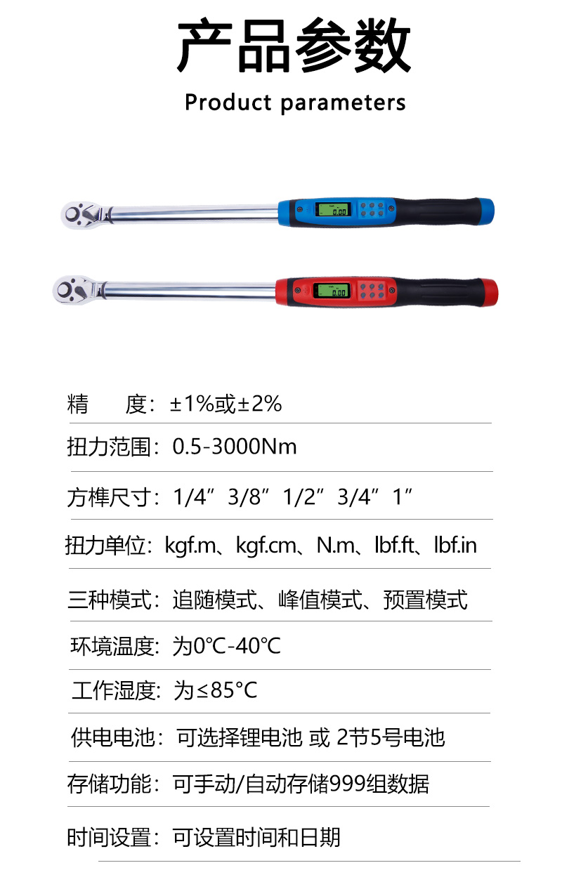 开拓台湾扭力扳手高精度电子数显测试仪可调式预置式公斤扭矩力矩