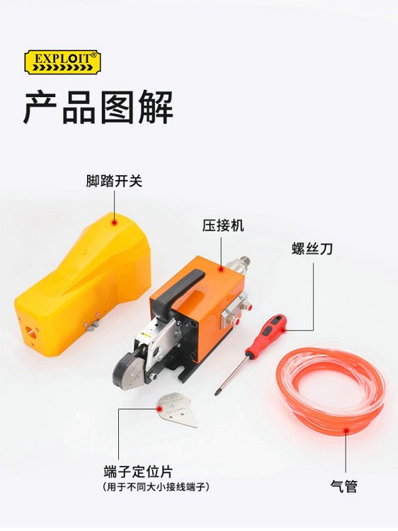 开拓气动压线钳自动冷压端子压线机0.25-10mm多功能管型压线神器