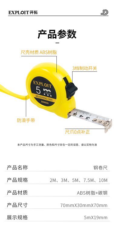 卷尺5米尺子钢圈尺正品家用加厚加硬迷你鲁班尺3米10米测量高精度