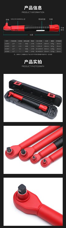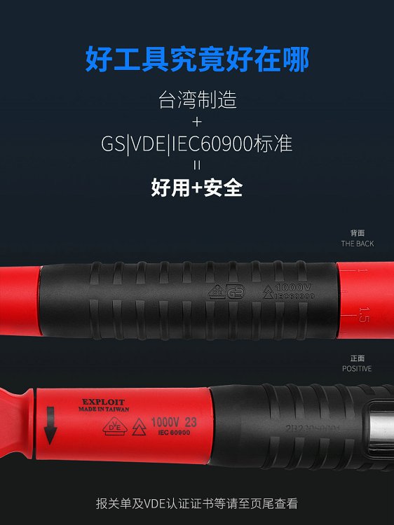 开拓绝缘扭力扳手预制式台湾制造VDE认证耐压1000V绝缘力矩扳手