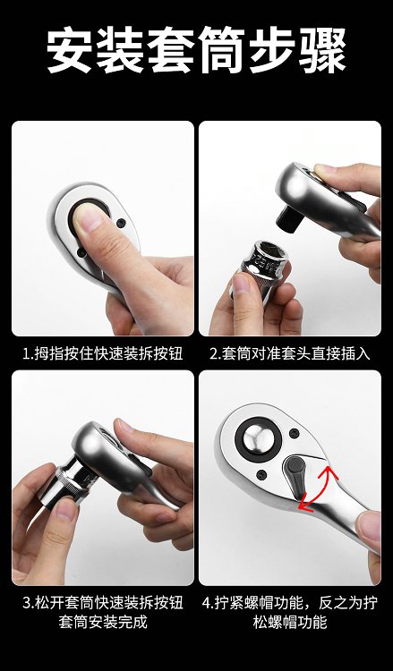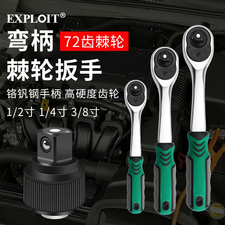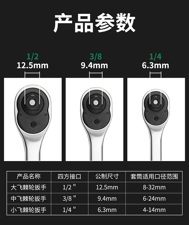 快速棘轮套筒扳手小飞中飞大飞双向万能72齿工业级外六角套管扳手