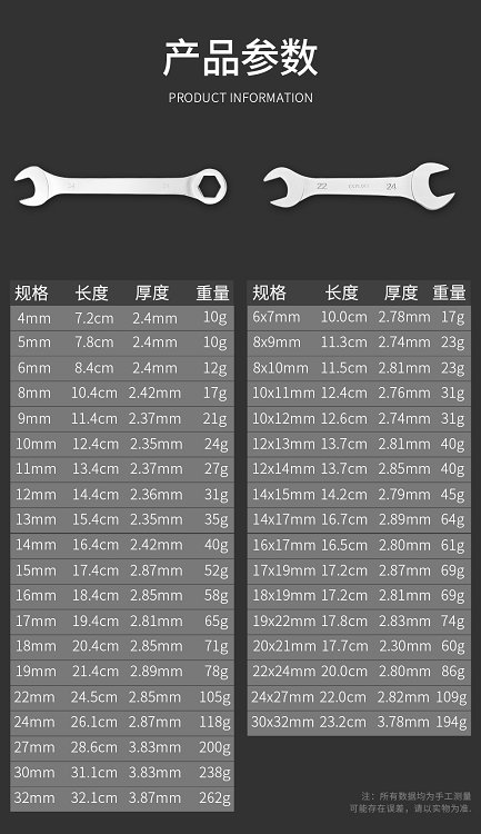 扳手工具套装开口梅花两用10号超薄扁板子薄型薄片8-32mm呆头板手