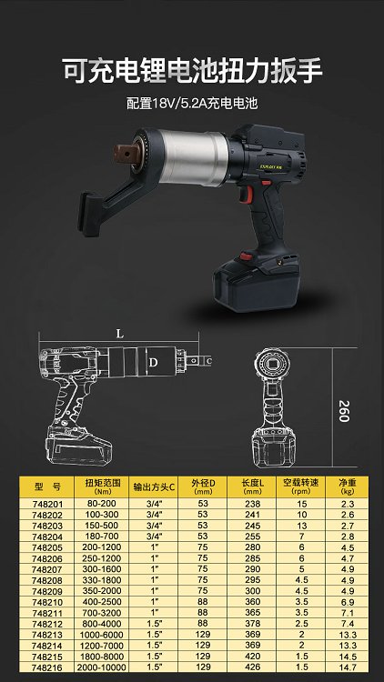 开拓重型电动液压扭力扳手公斤高精度可调式3000n1000扭矩800牛