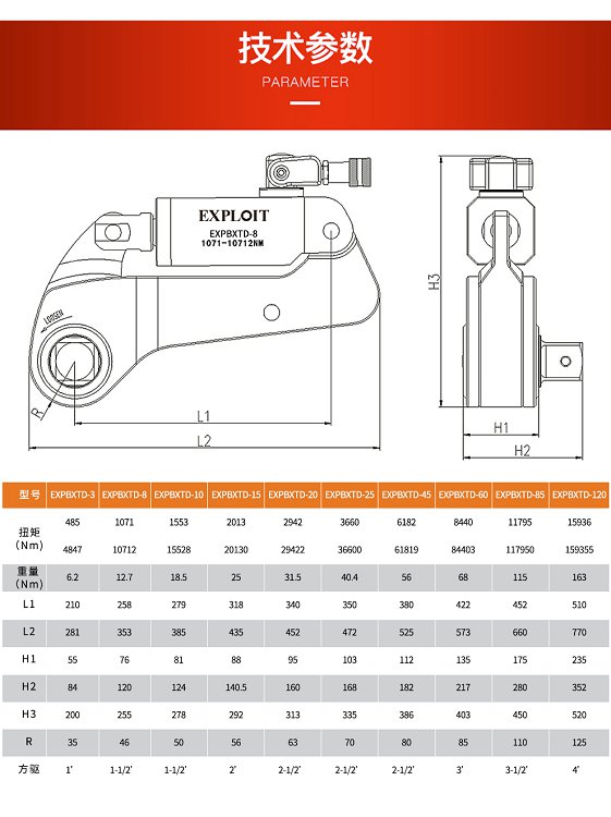开拓重型液压扭力扳手大功率大扭力工业级力矩扳手螺母螺栓拆卸器