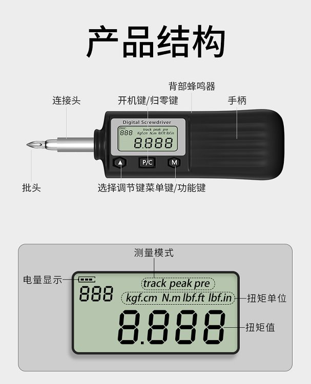 开拓数显扭力螺丝刀高精度可调预置式扭矩力矩扭力计起子批头螺丝