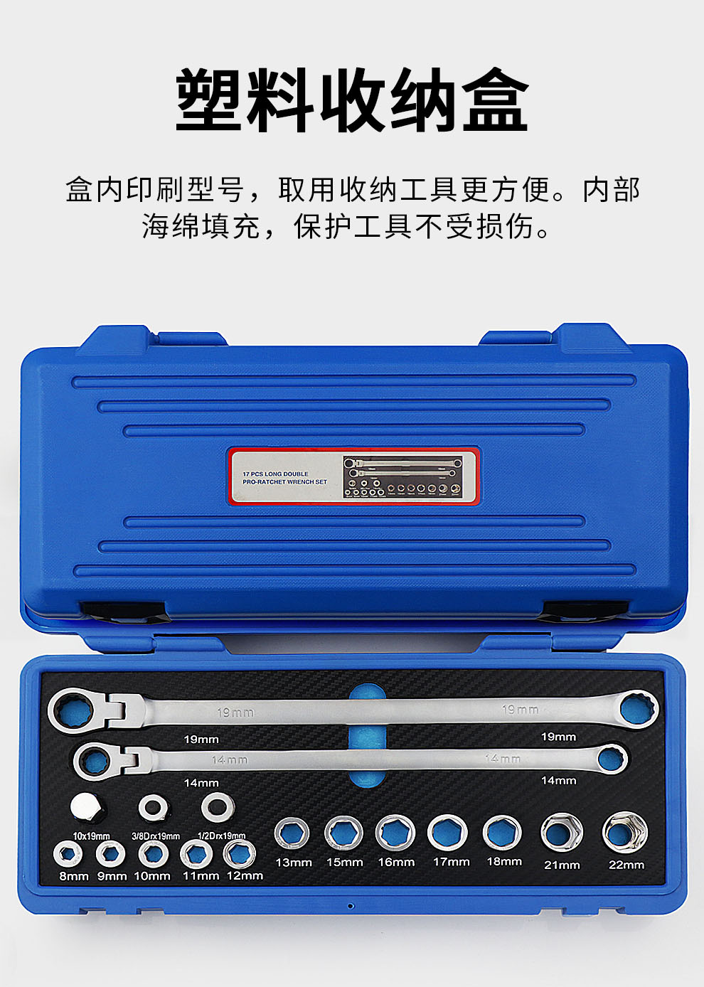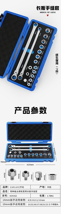 开拓活动头棘轮套筒扳手组合工具套装加长梅花双头快速汽修呆扳手