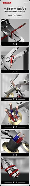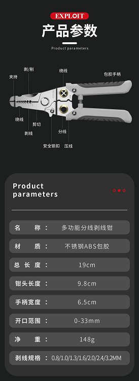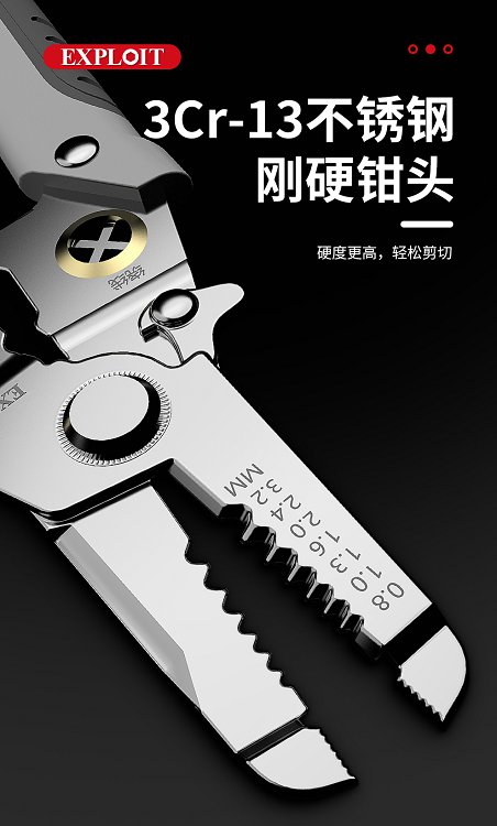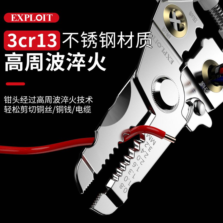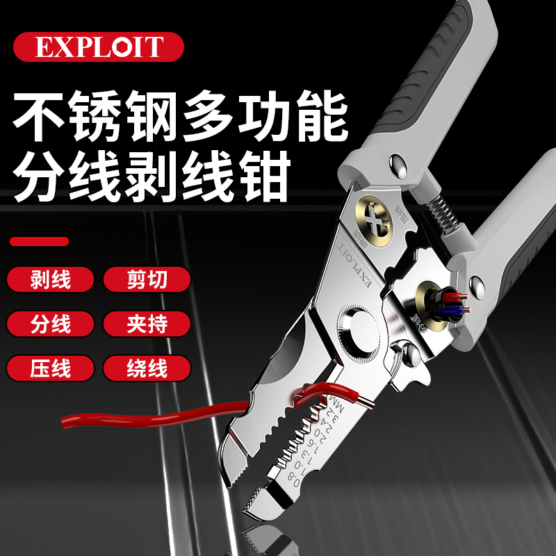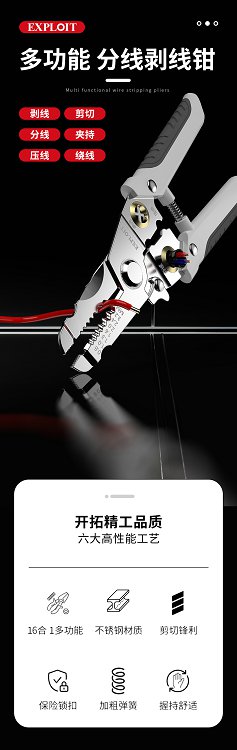 开拓剥线钳电工专用剪线钳多功能扒皮钳子手持多功能分线压线钳