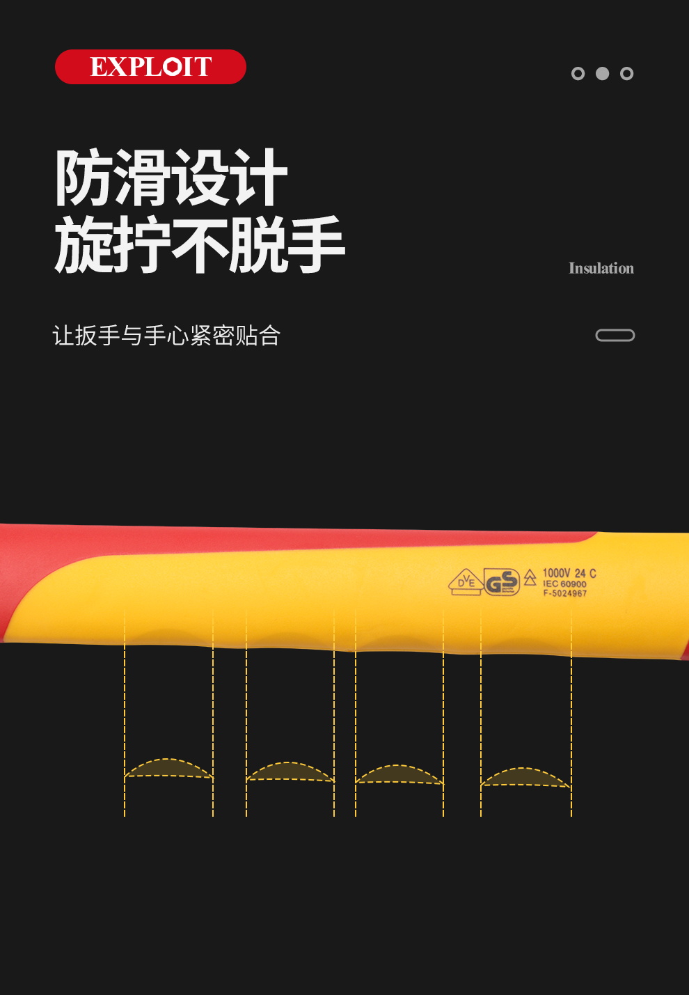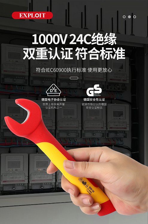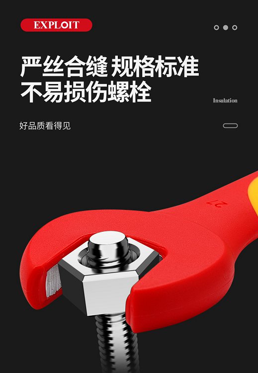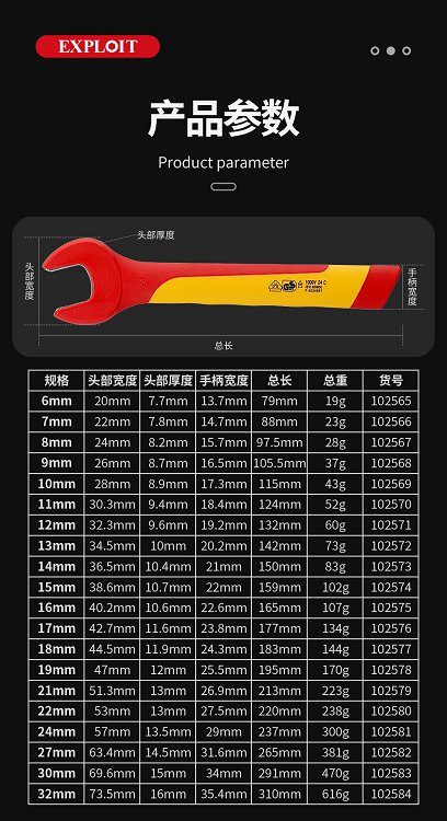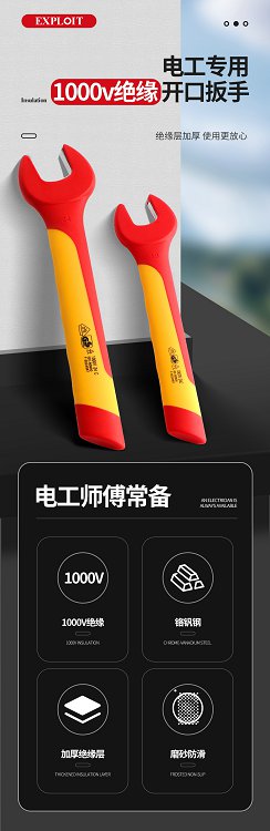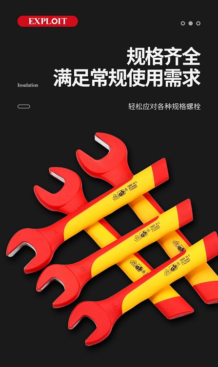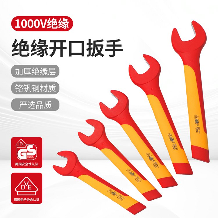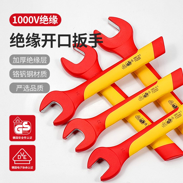 开拓绝缘开口扳手电工专用单头呆扳手耐高压1000V新能源维修6-32