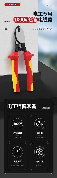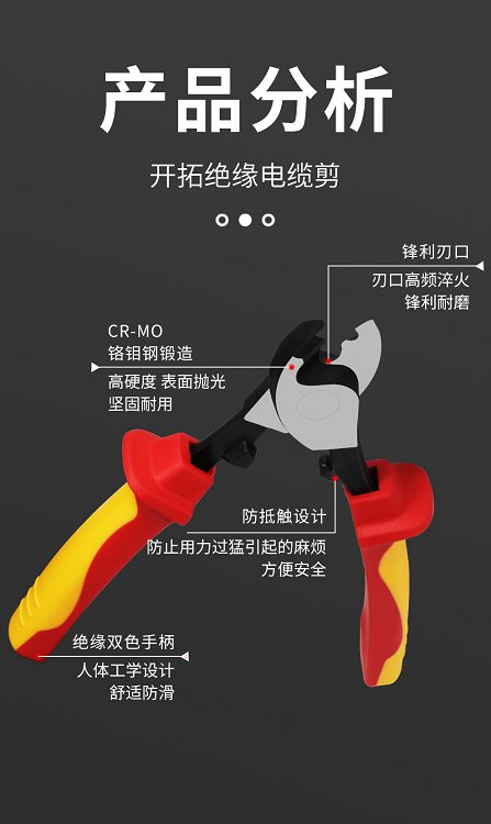 开拓绝缘电缆剪德国VDE认证1000V耐压电工专用剥线断线剪线钳