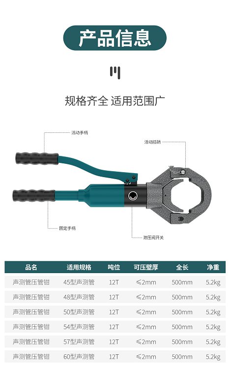 声测管液压钳双槽管子钳45/48/50/54/57/60mm工业级水暖管卡压钳