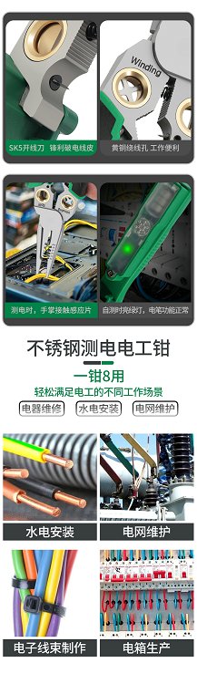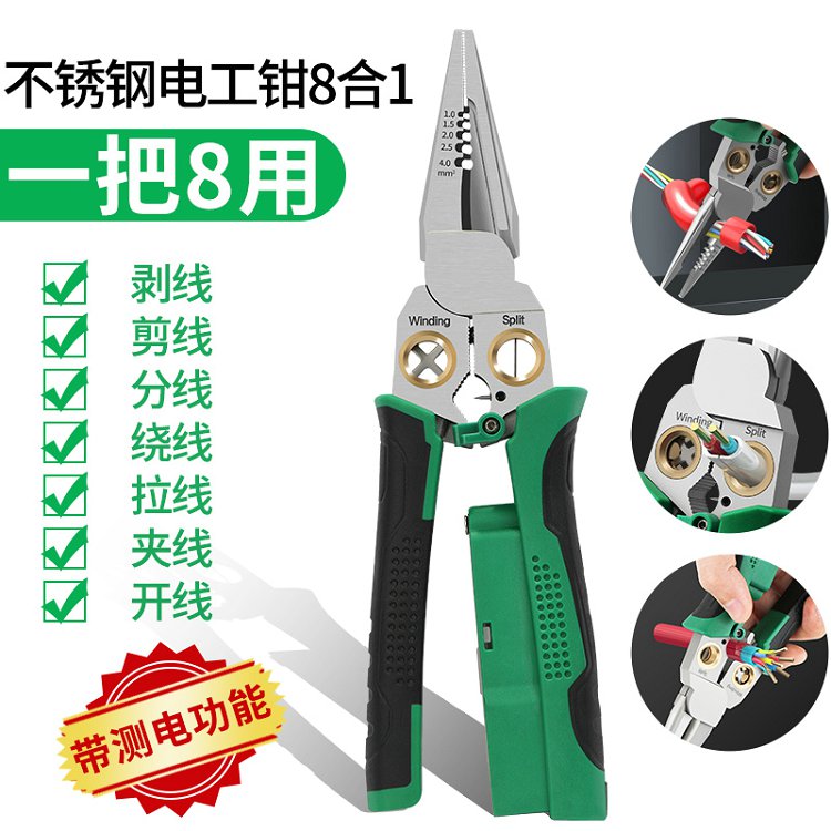 开拓剥线钳电工专用工具多功能剪切接线钳电线电缆测电扒拉线钳子
