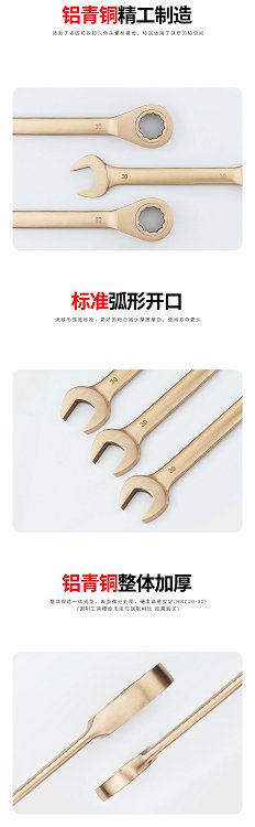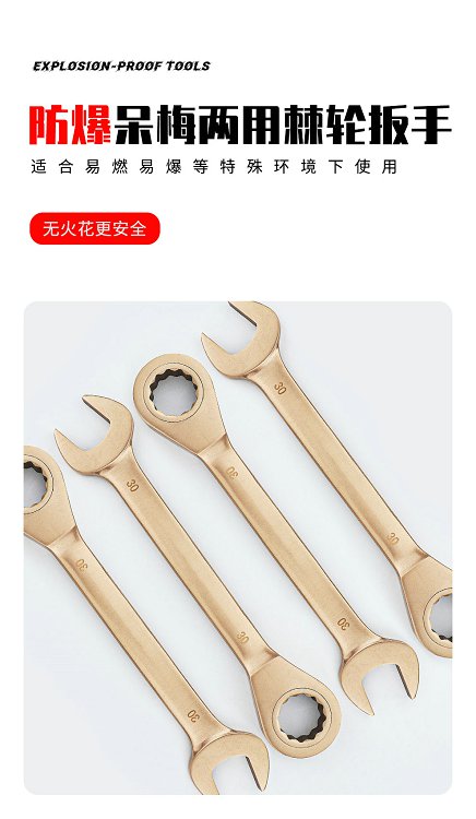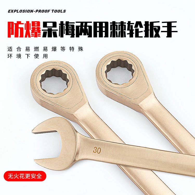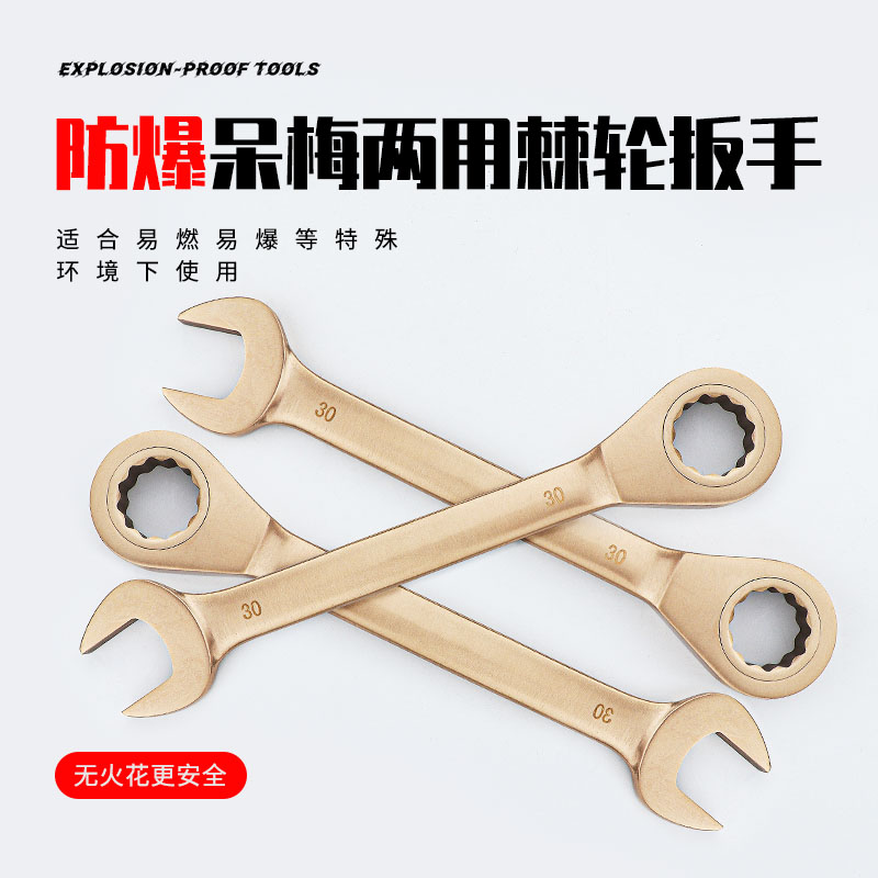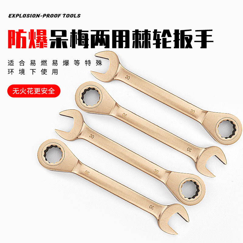 开拓防爆工具两用棘轮扳手铝青铜纯铜无火花开口梅花棘轮快速扳手