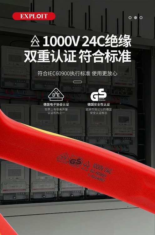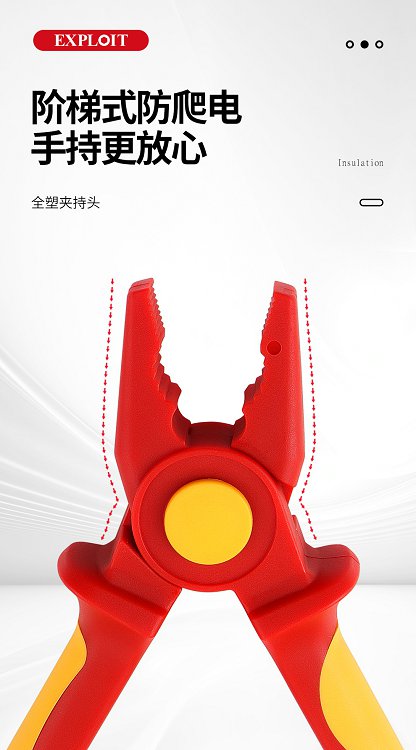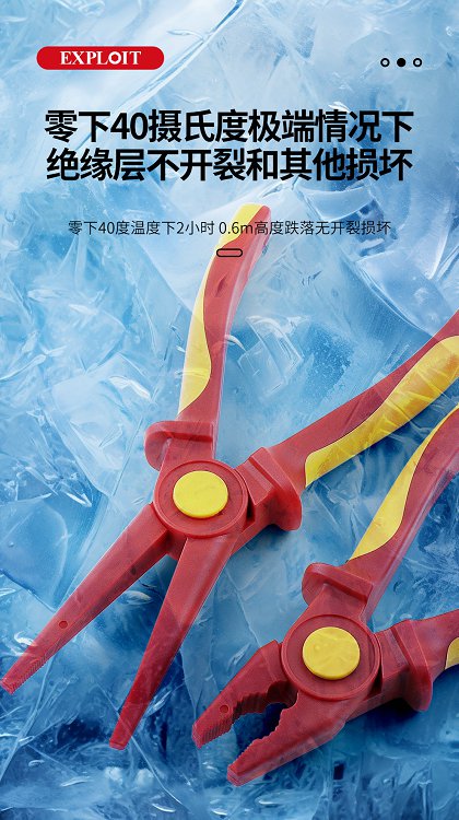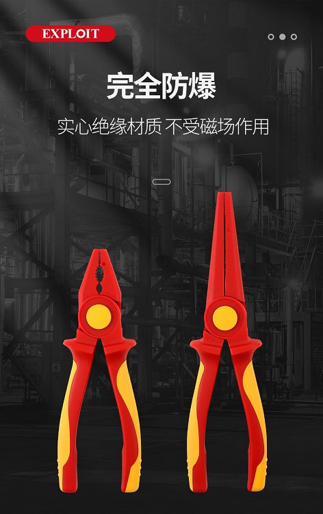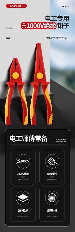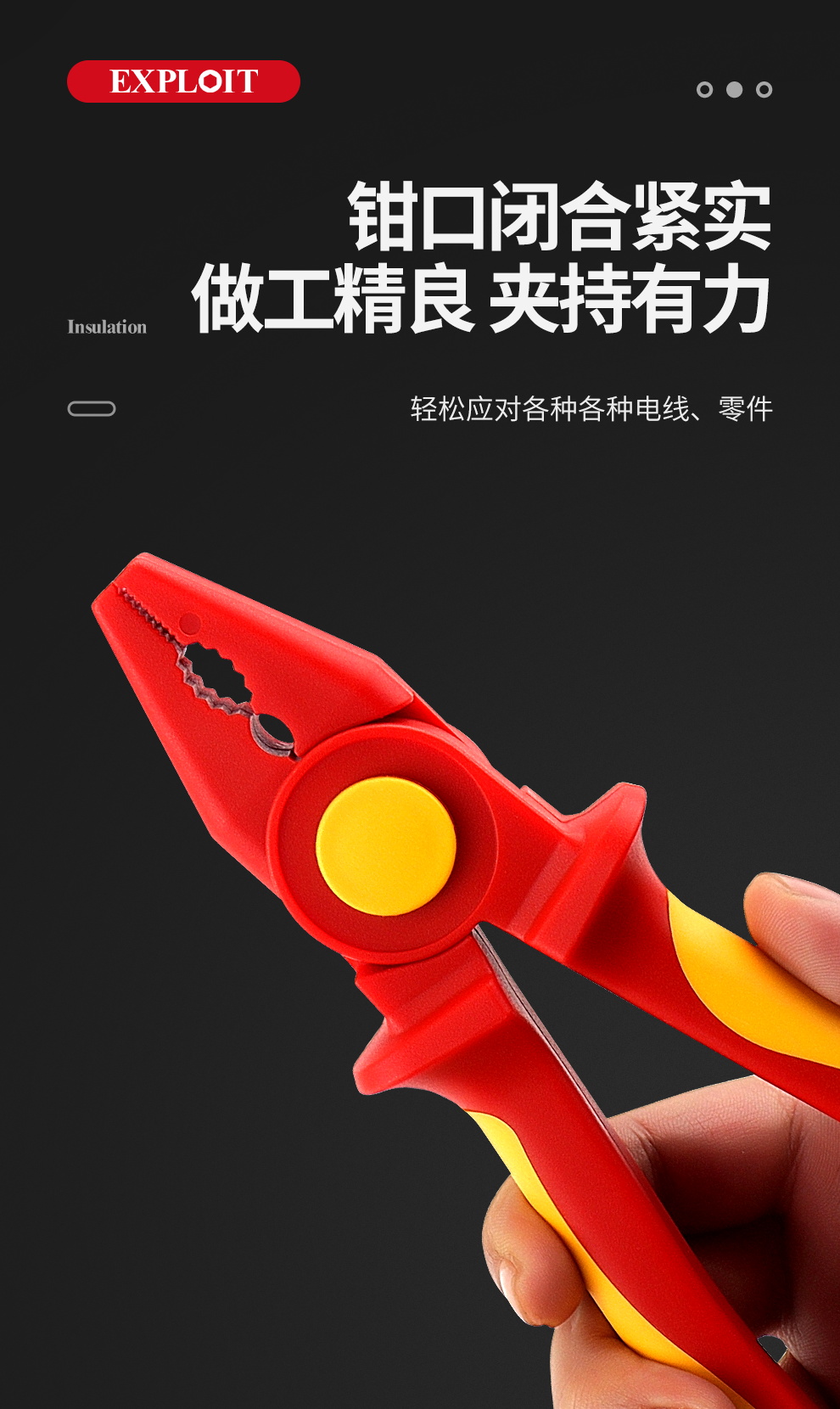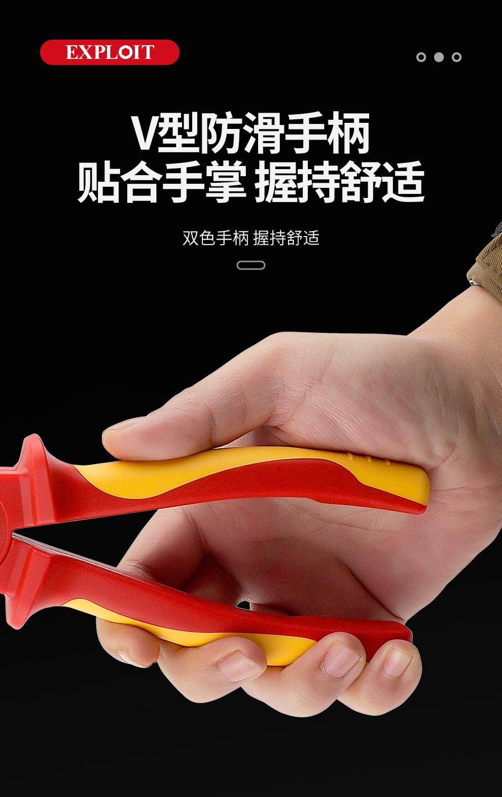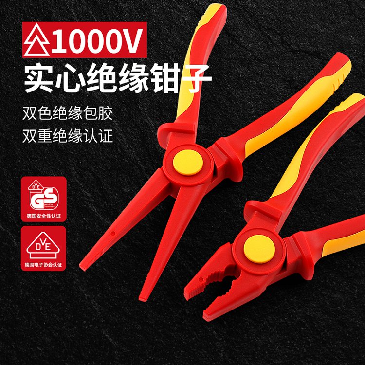 开拓绝缘钢丝钳多功能VDE耐高压1000V伏电工专用工具实心尖嘴钳子