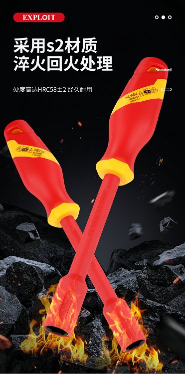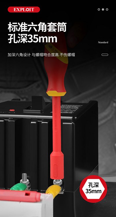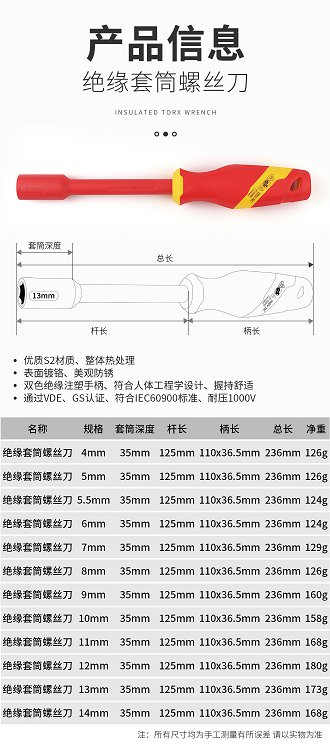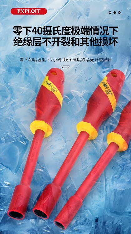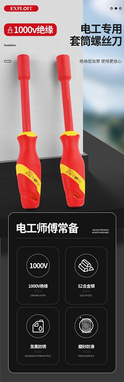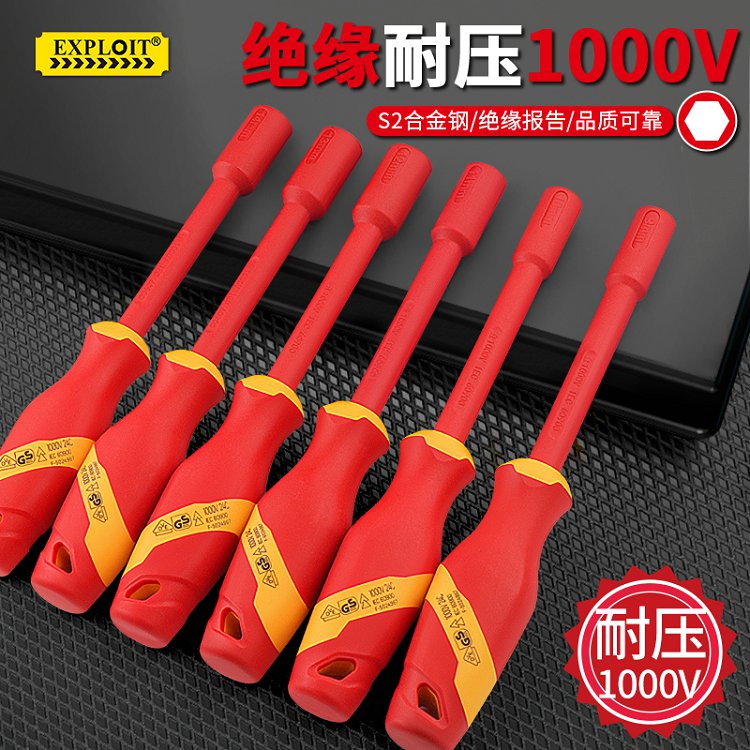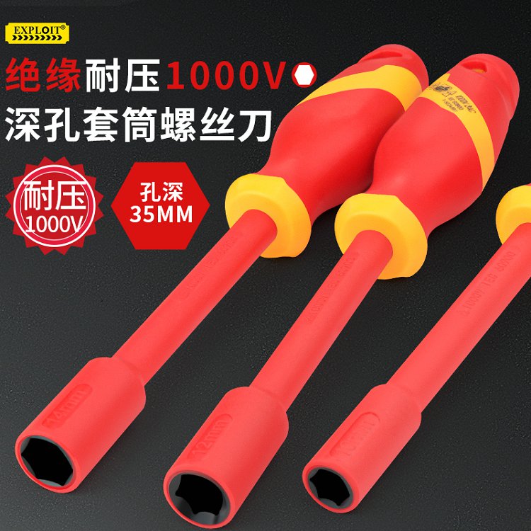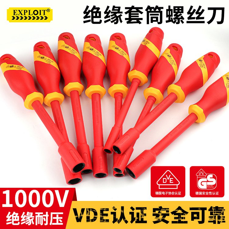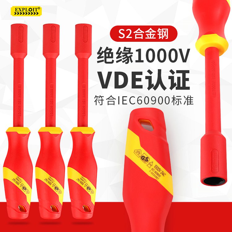 开拓双色绝缘套筒螺丝批VDE认证1000V耐高压电工专用六角套筒起子