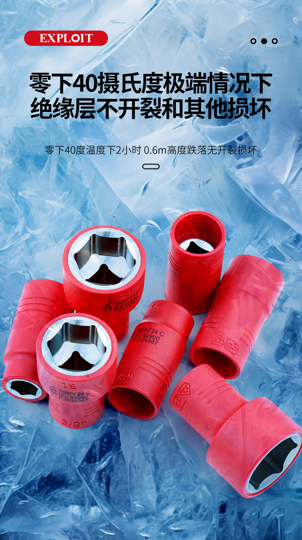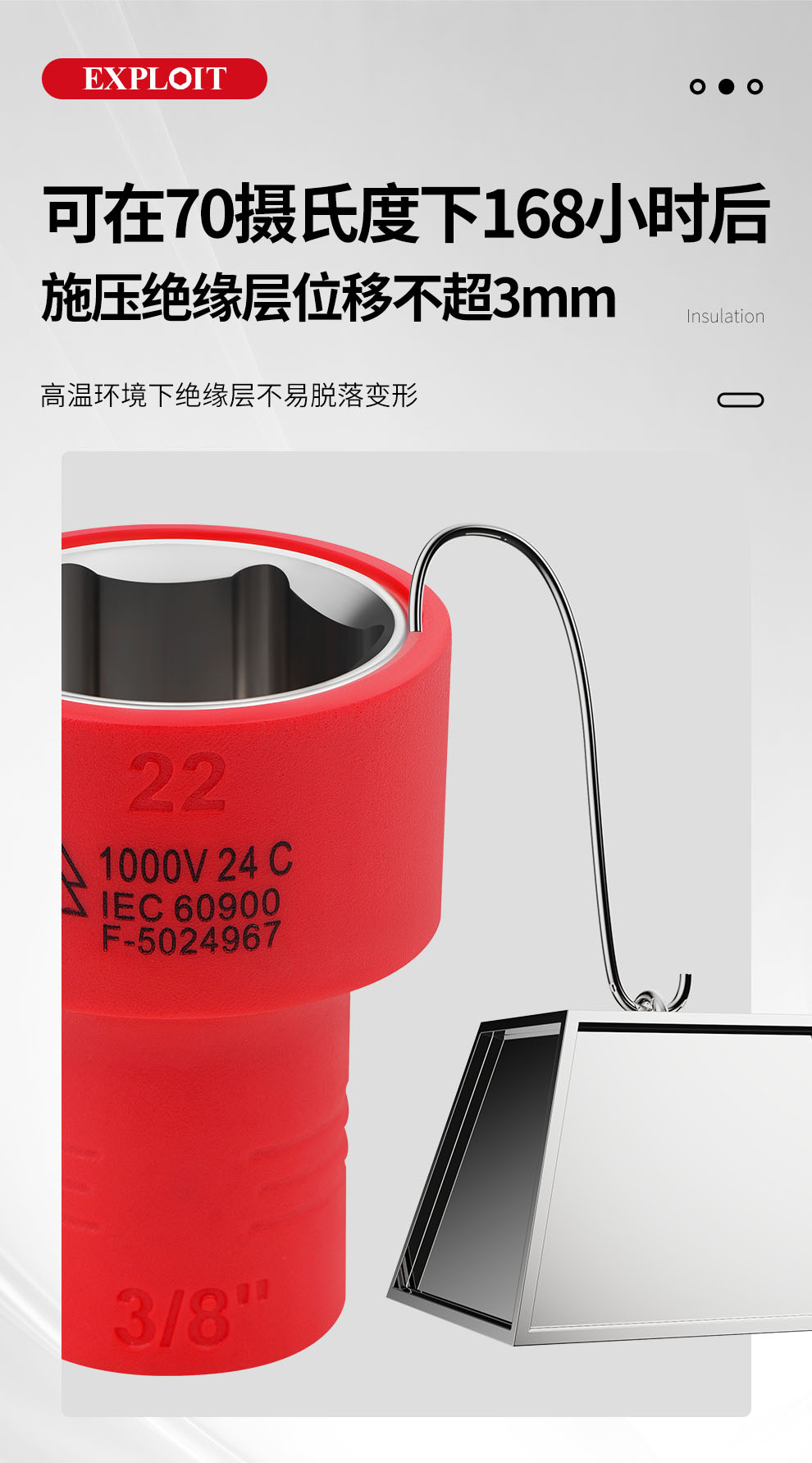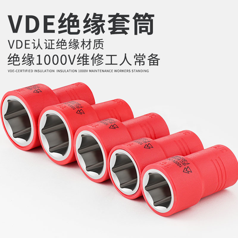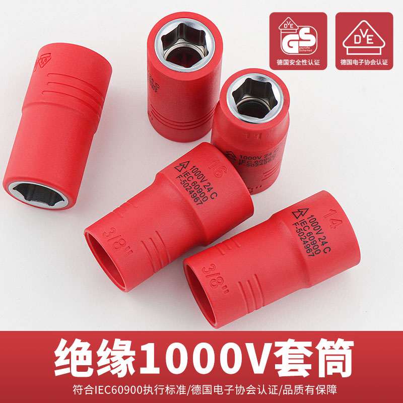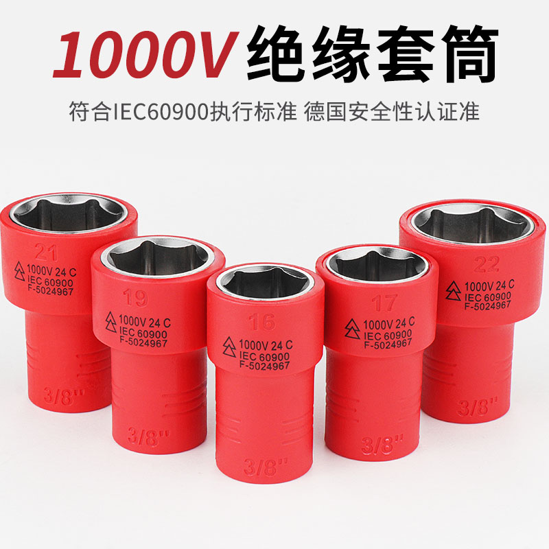 开拓绝缘六角套筒VDE认证1000V伏耐高压电工专用3/8中飞公制套筒