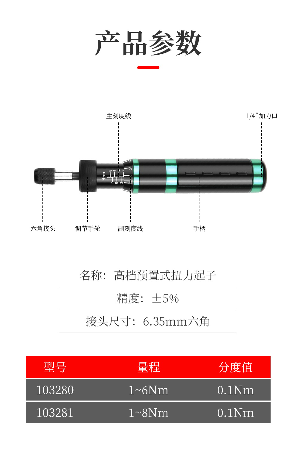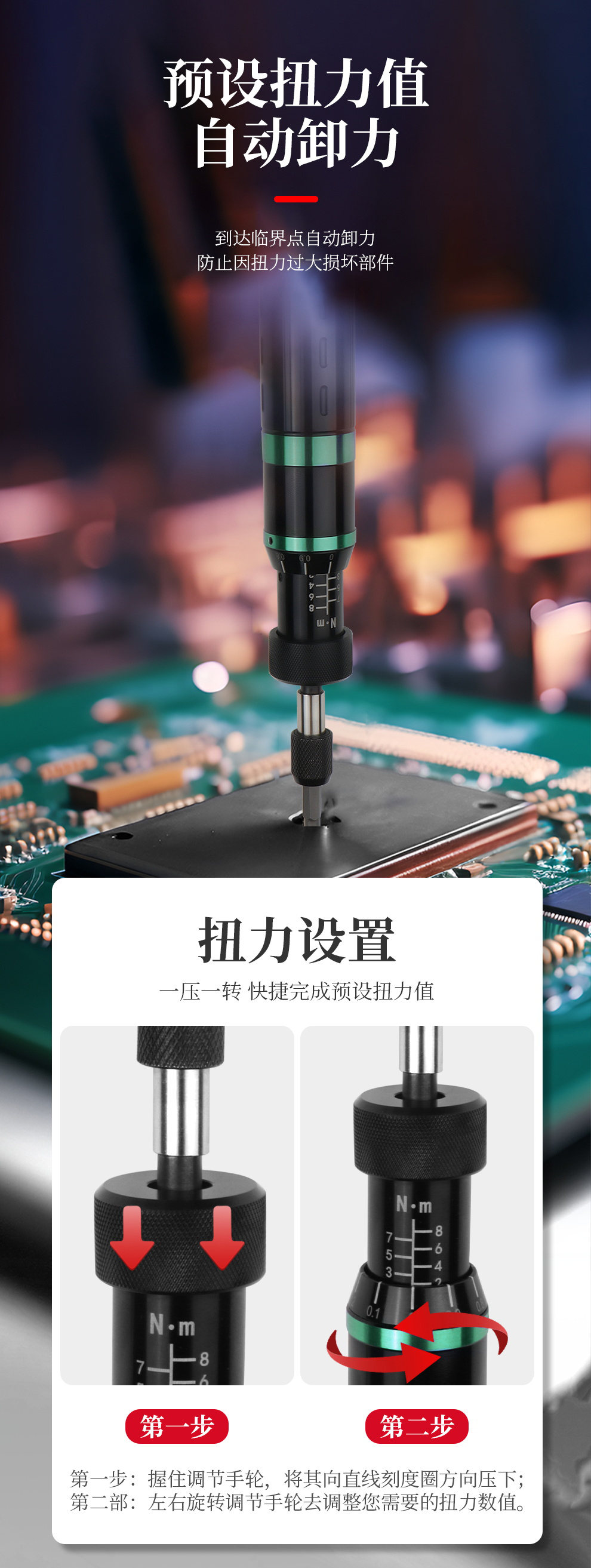 开拓扭力螺丝刀1-8N高精度自动打滑全金属手动可调矩力矩扭力起子