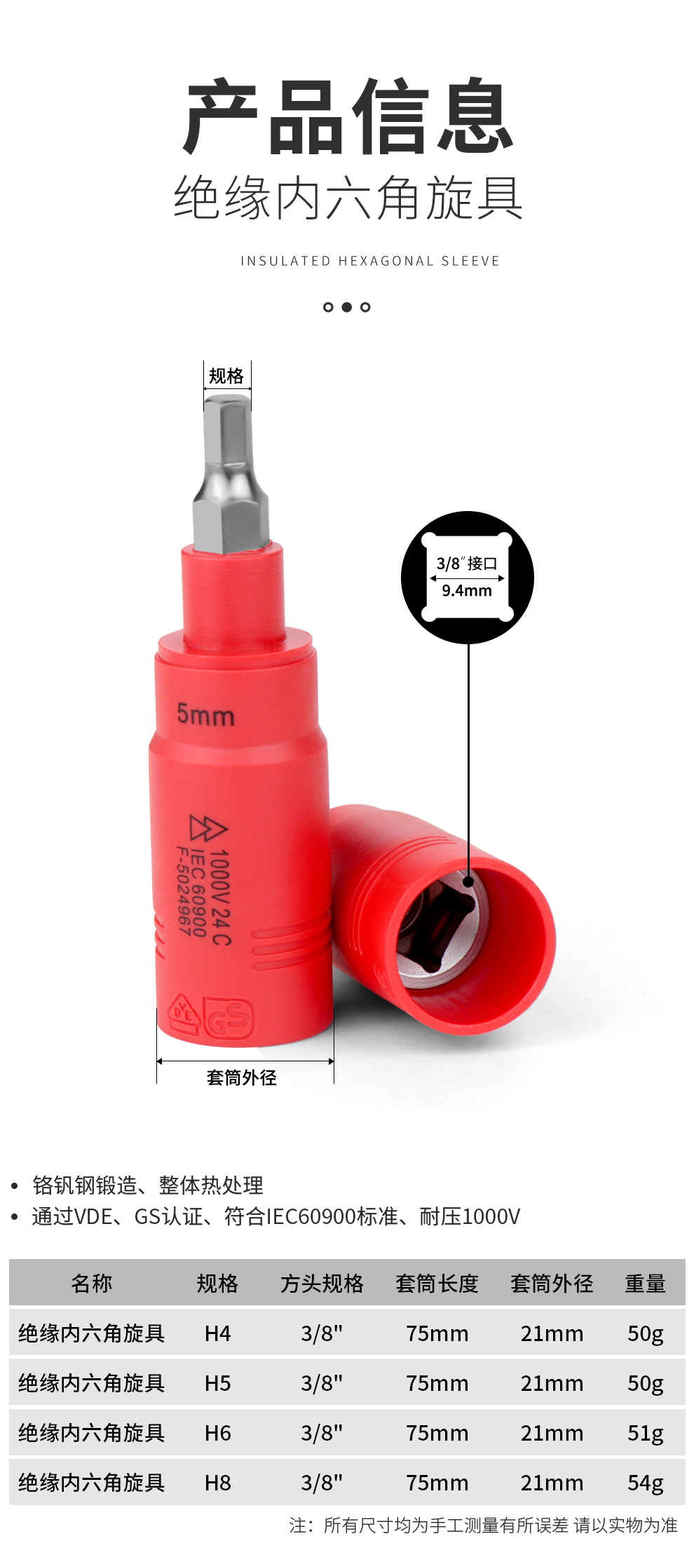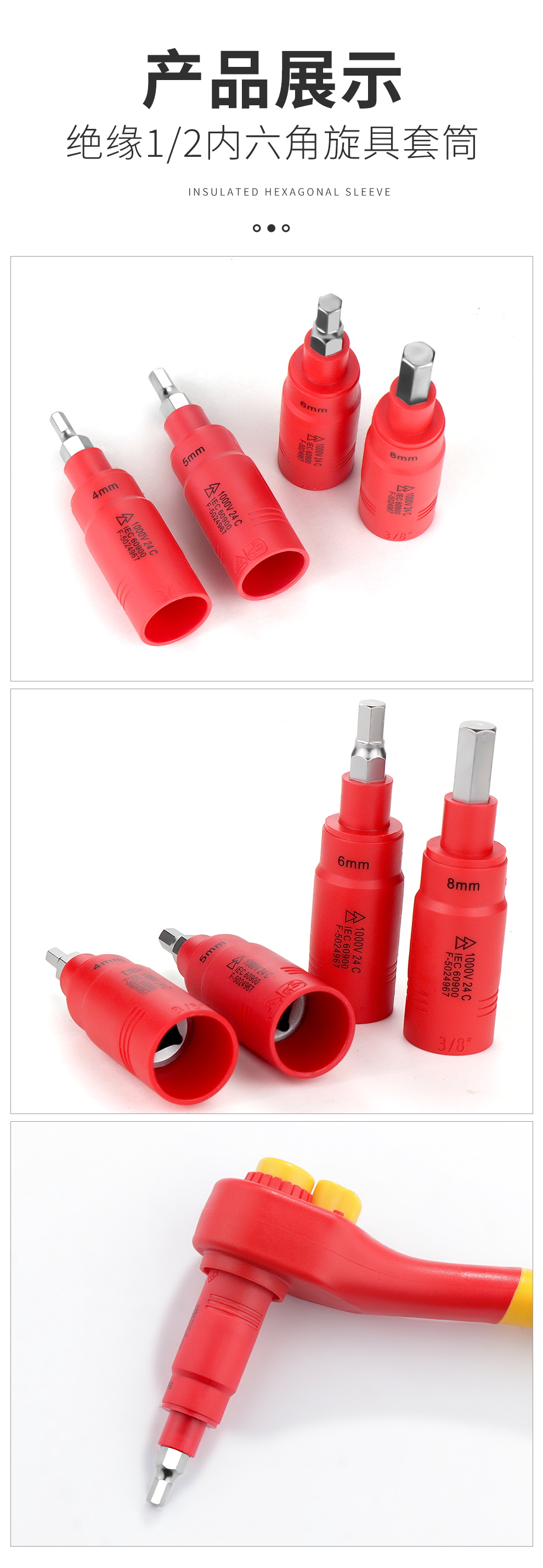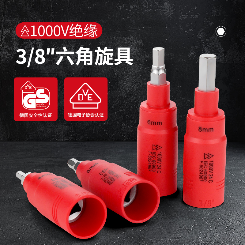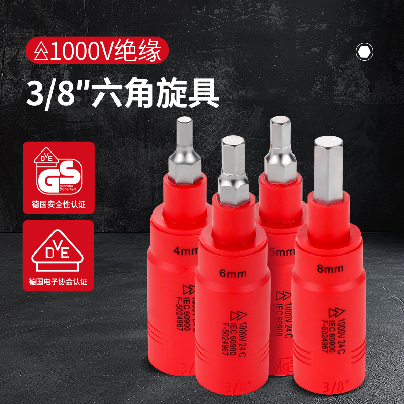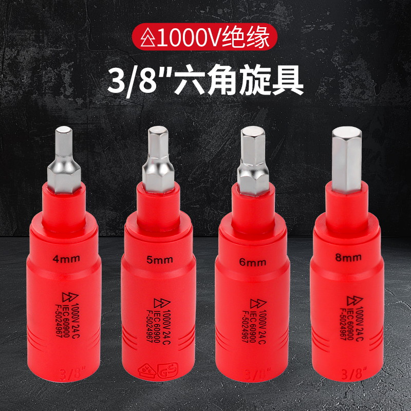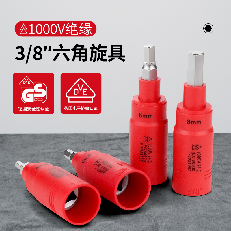 开拓 内六角扳手套筒1000V绝缘耐高压3/8中飞压批内六方旋具套筒