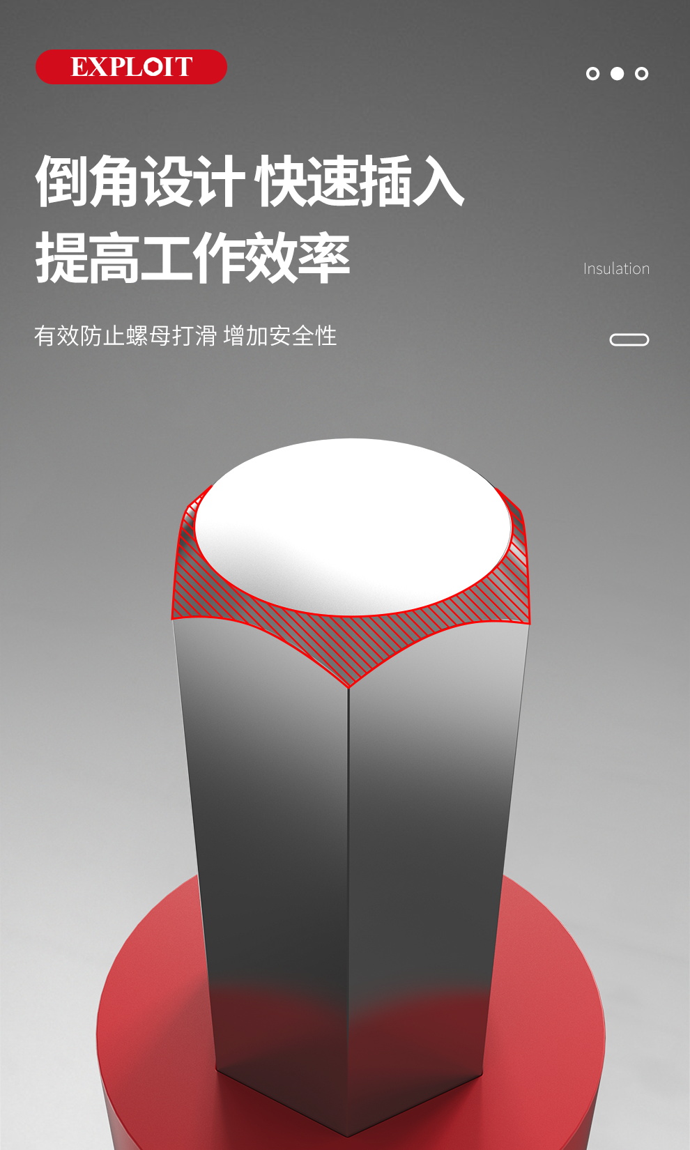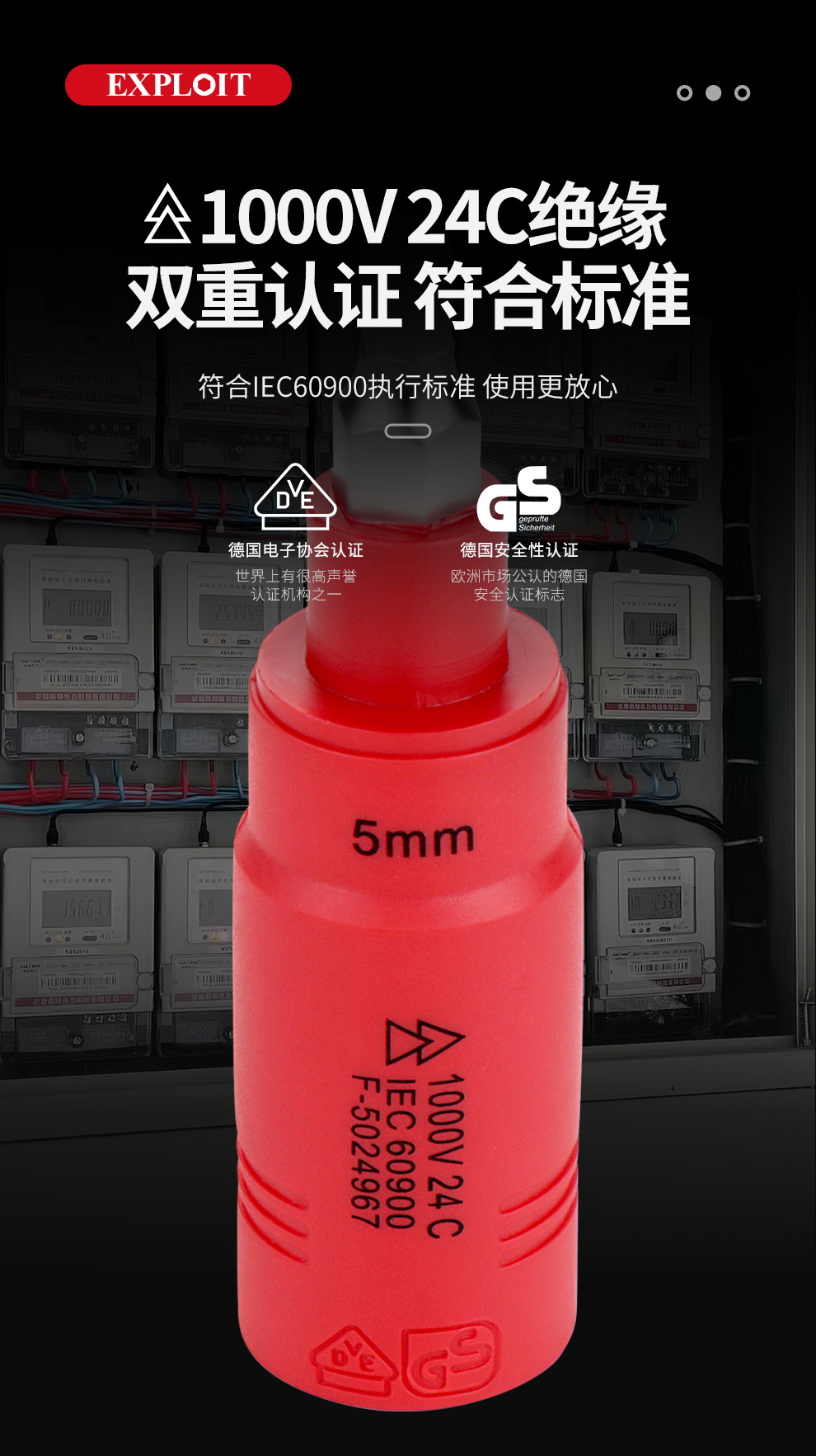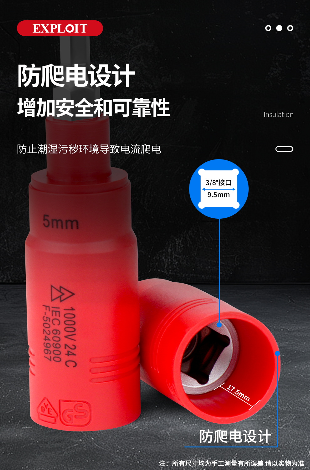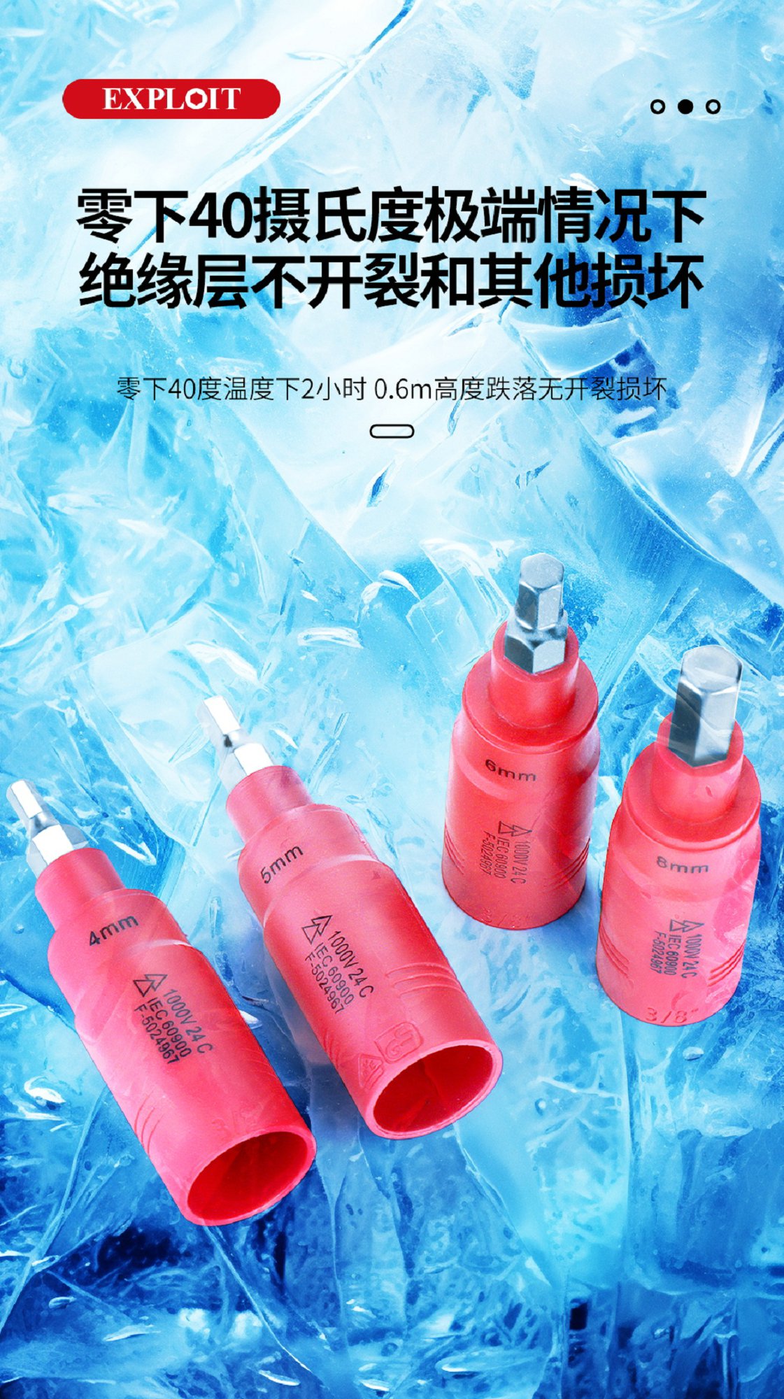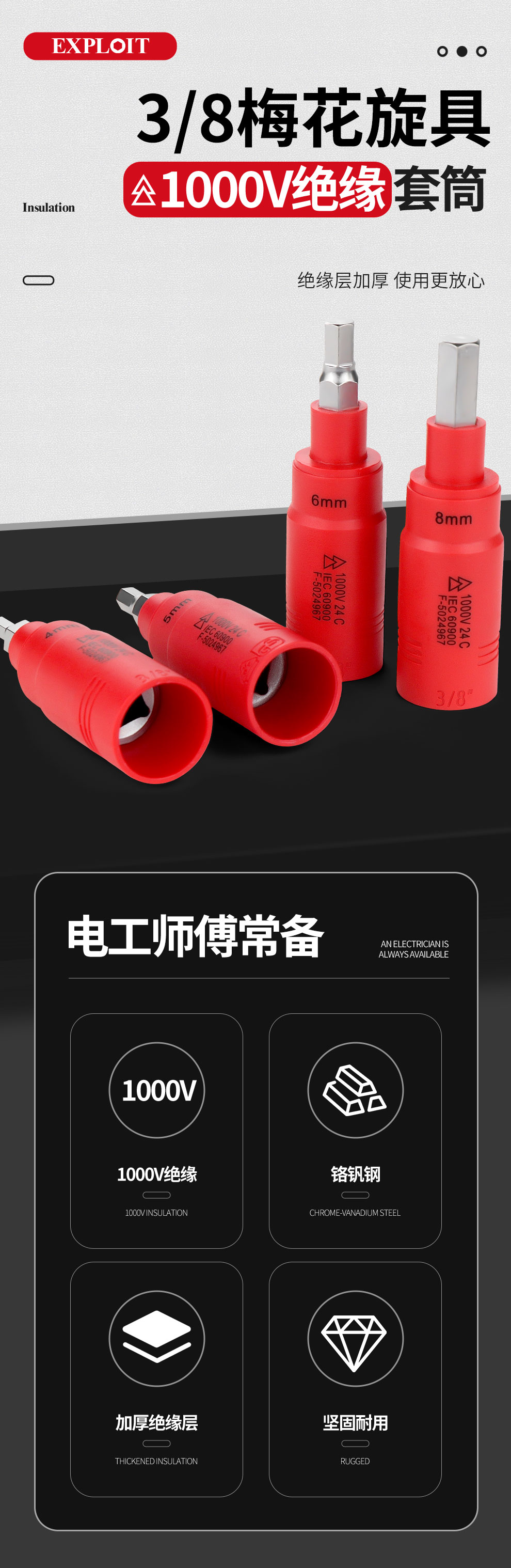开拓 内六角扳手套筒1000V绝缘耐高压3/8中飞压批内六方旋具套筒
