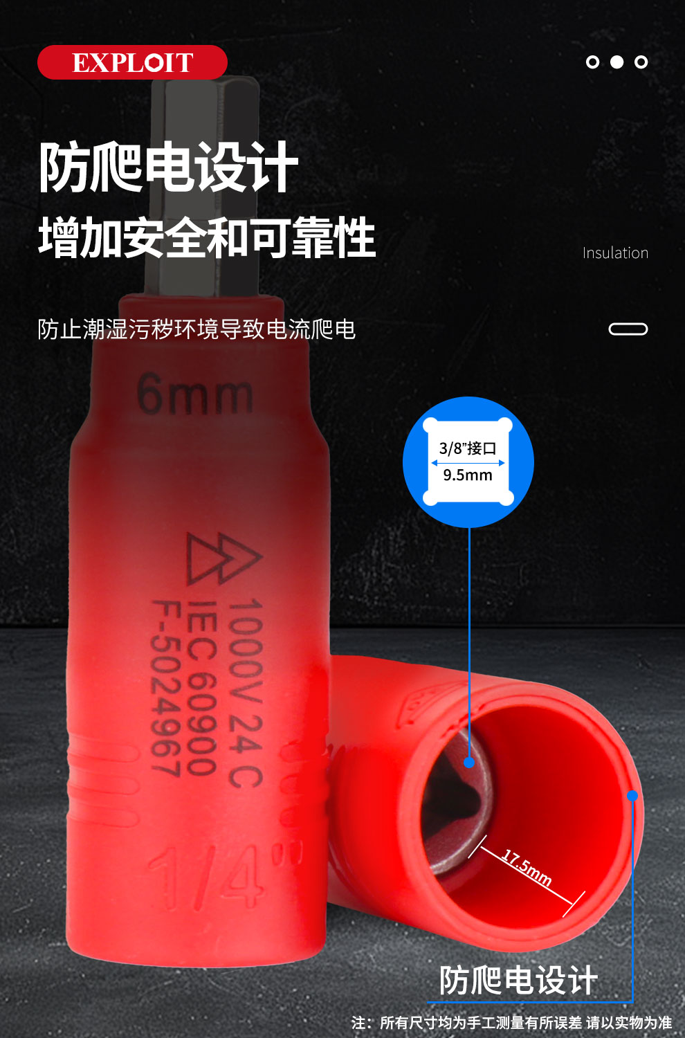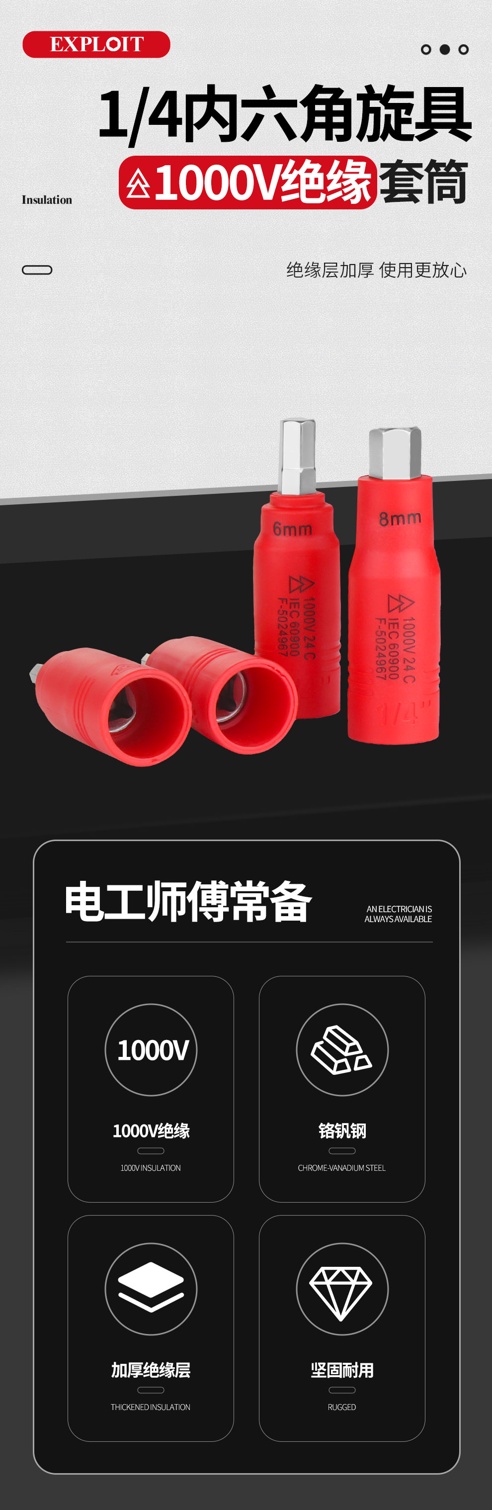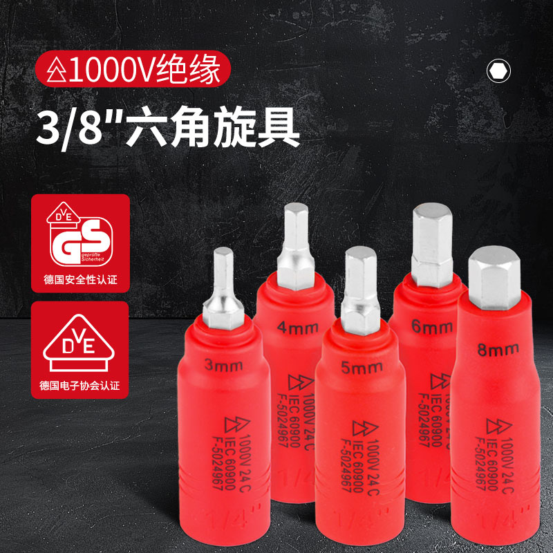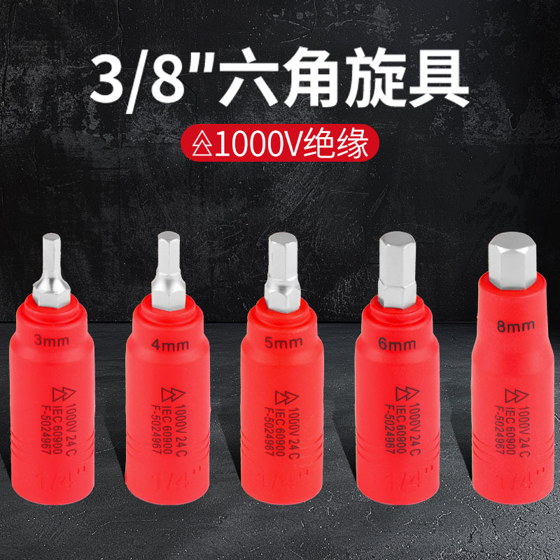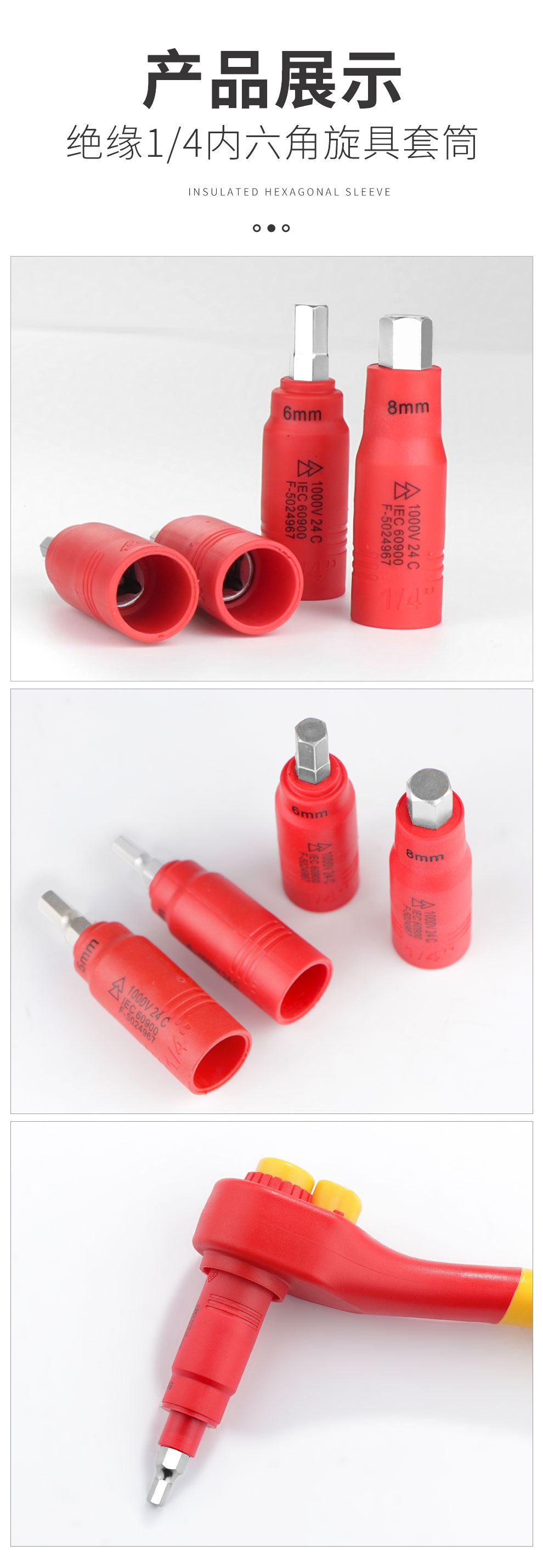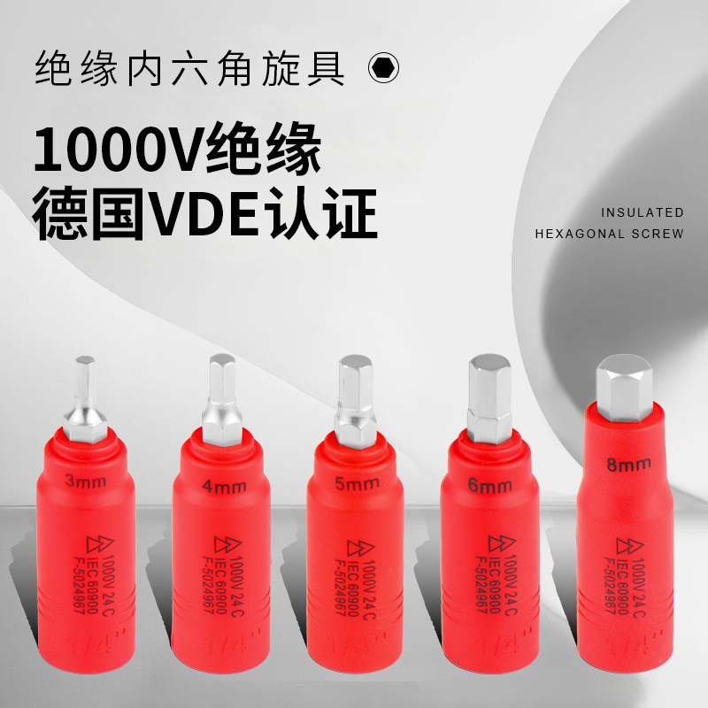 开拓内六角扳手套筒1000V绝缘耐高压1/4小飞压批内六方旋具套筒