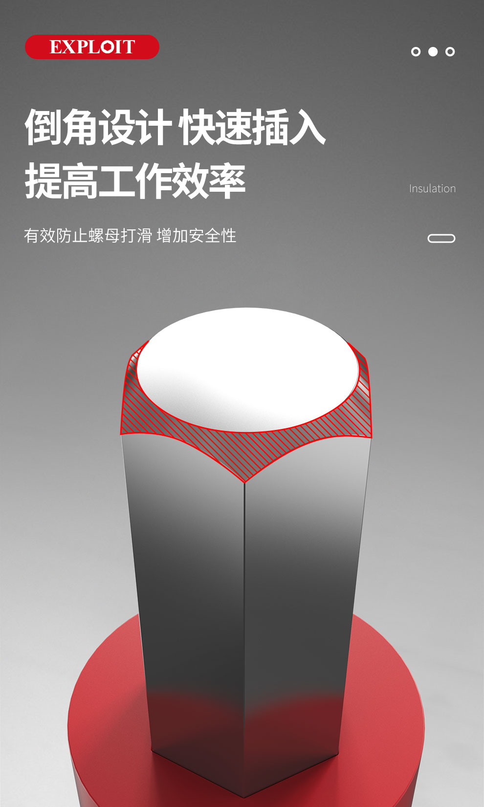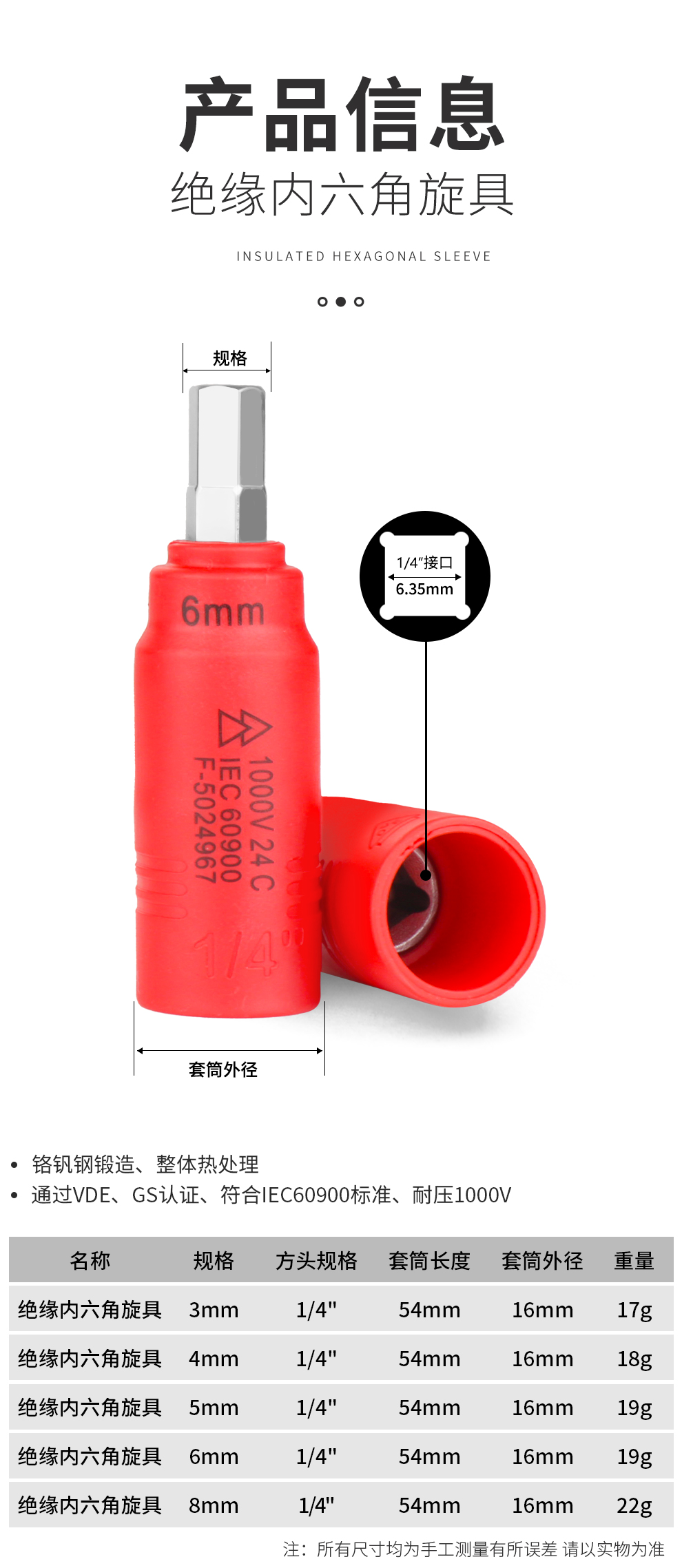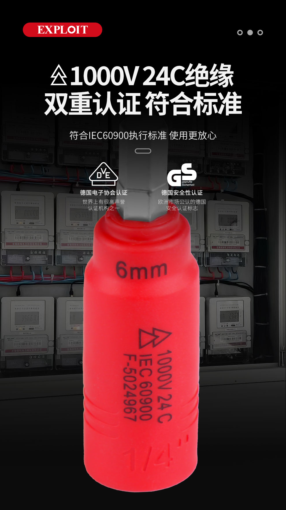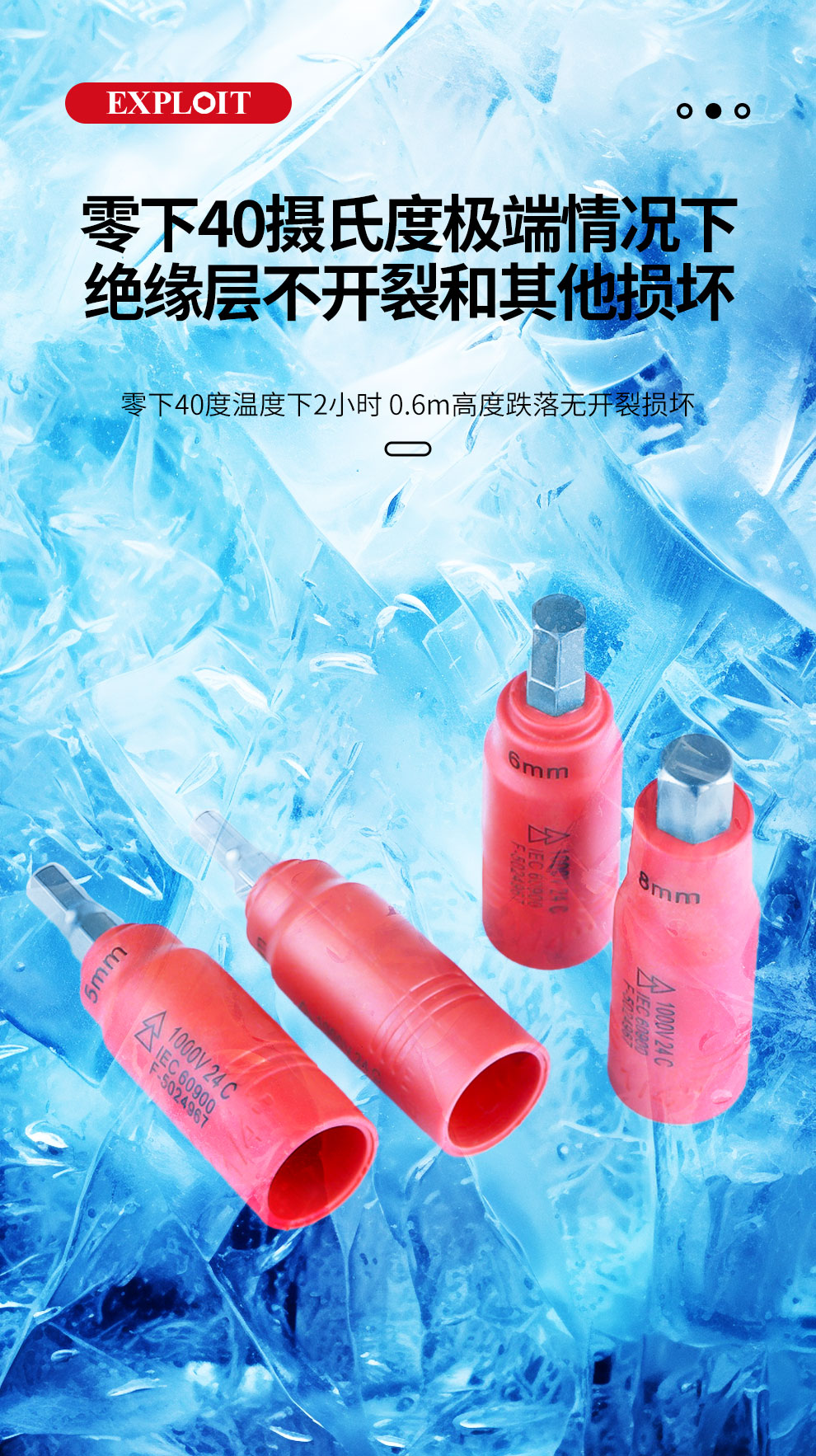 开拓内六角扳手套筒1000V绝缘耐高压1/4小飞压批内六方旋具套筒