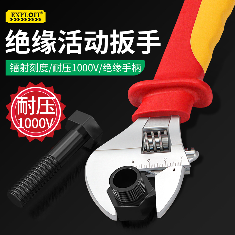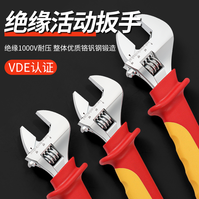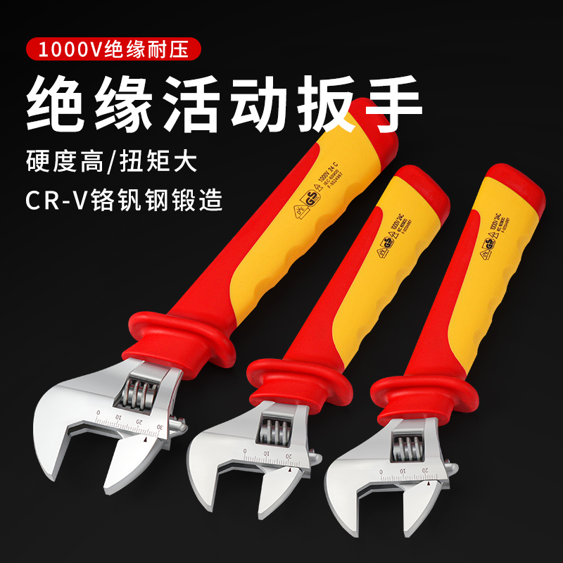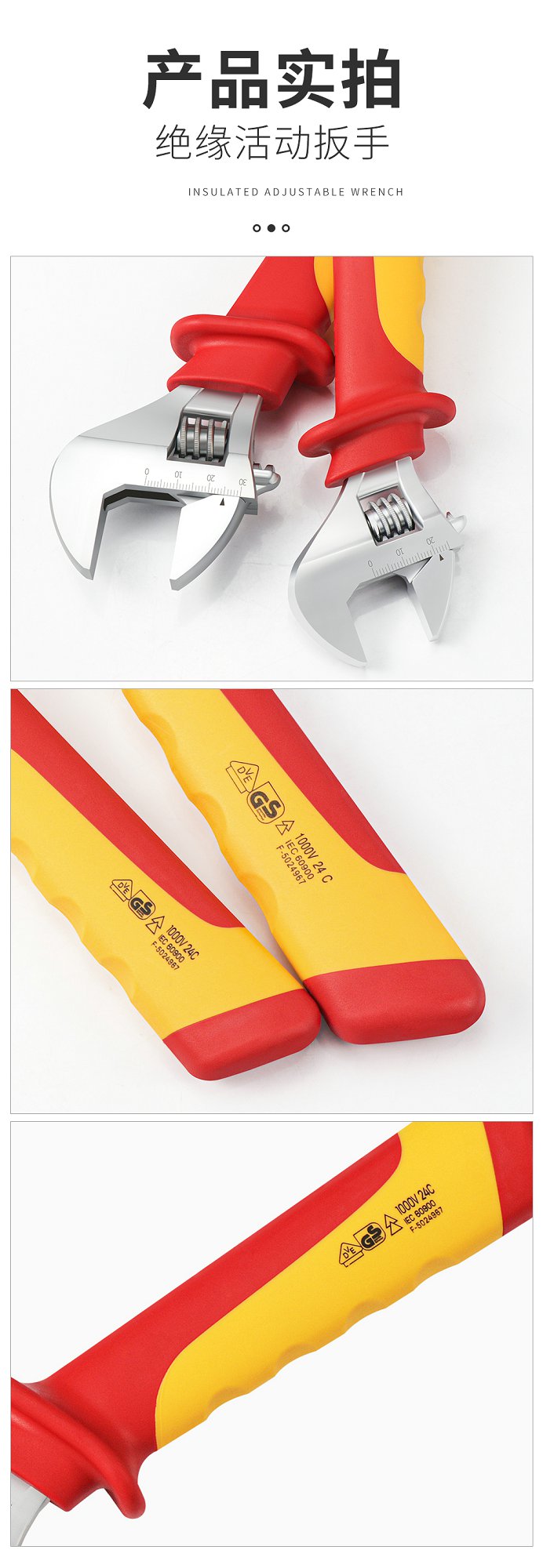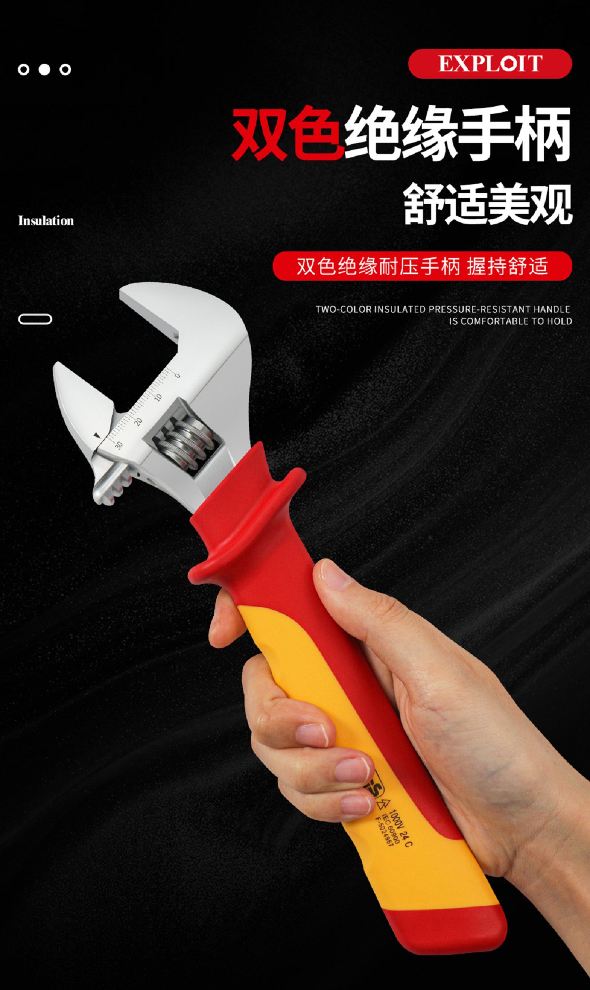 开拓 绝缘活络扳手1000V耐高压VDE认证电工专用8/10寸板子工具