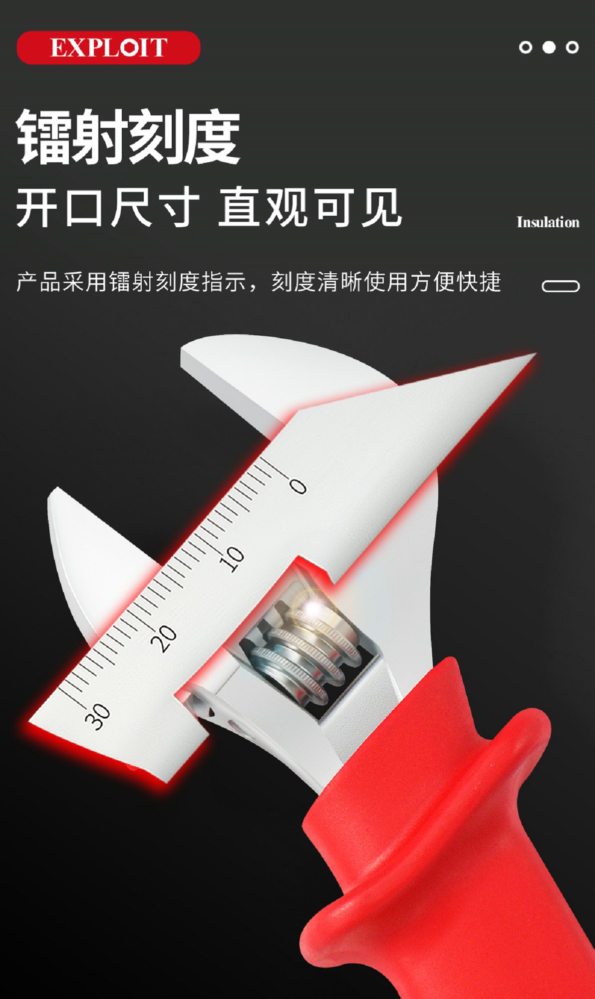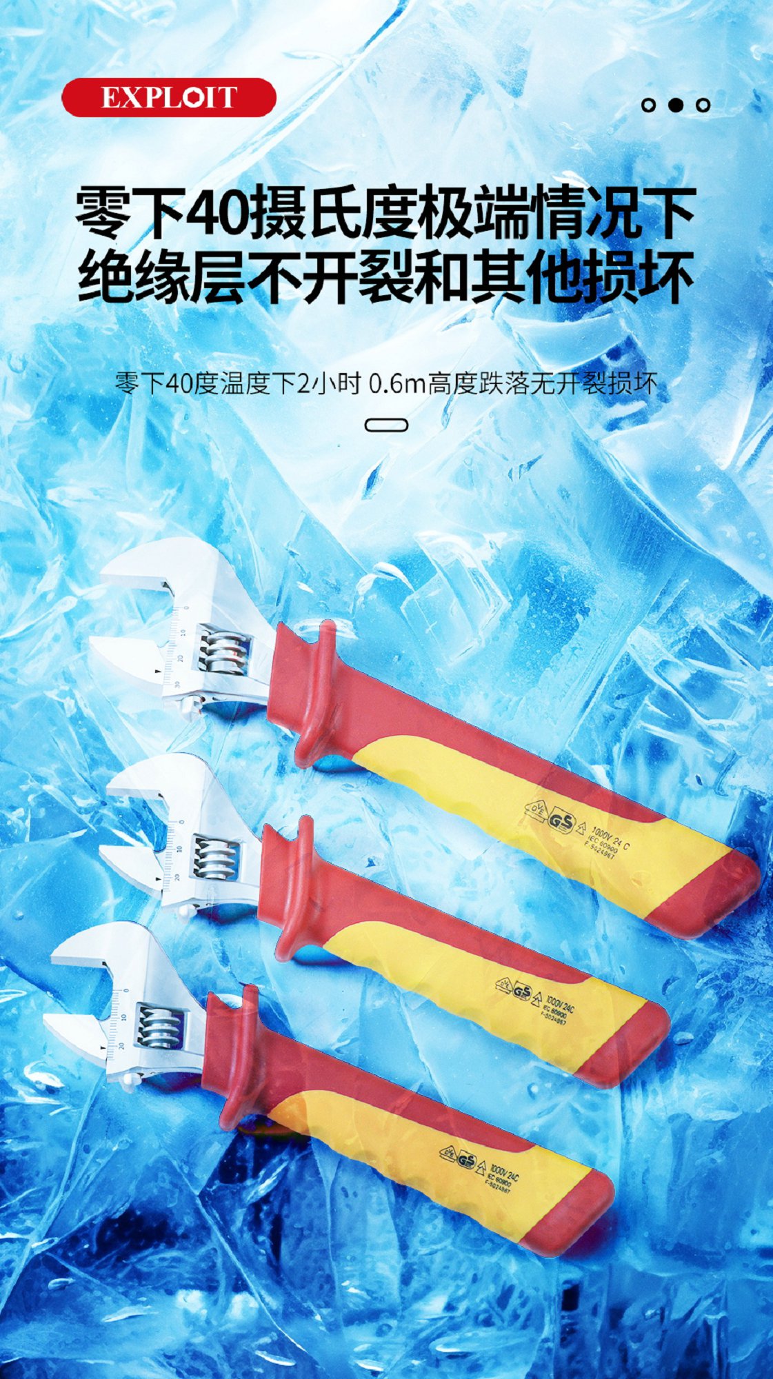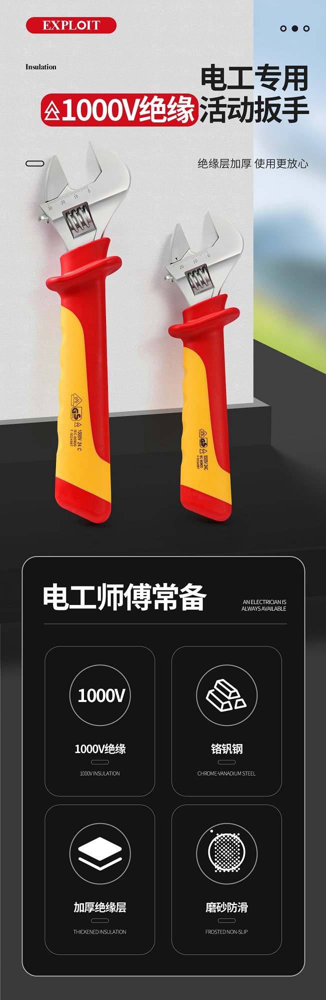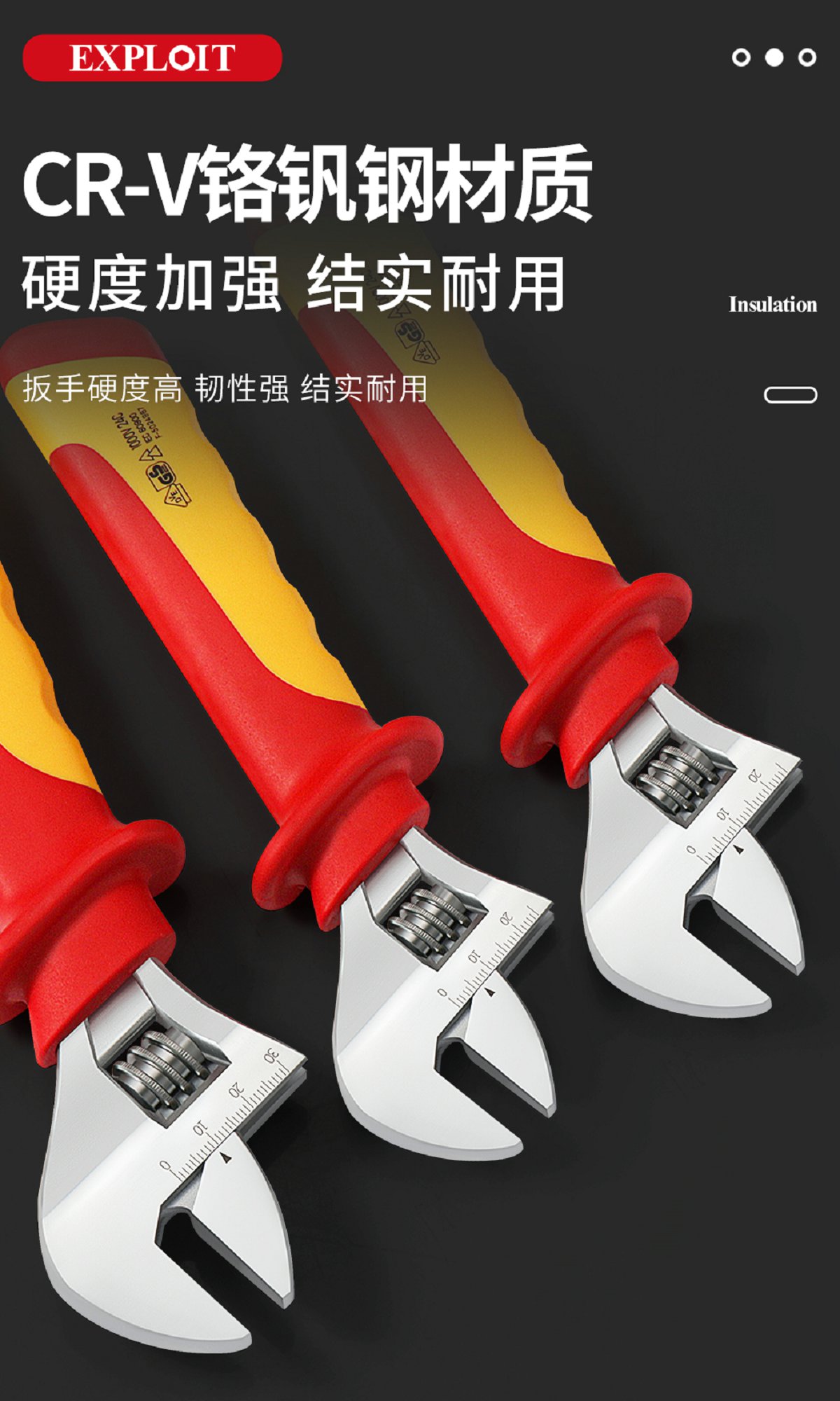 开拓 绝缘活络扳手1000V耐高压VDE认证电工专用8/10寸板子工具