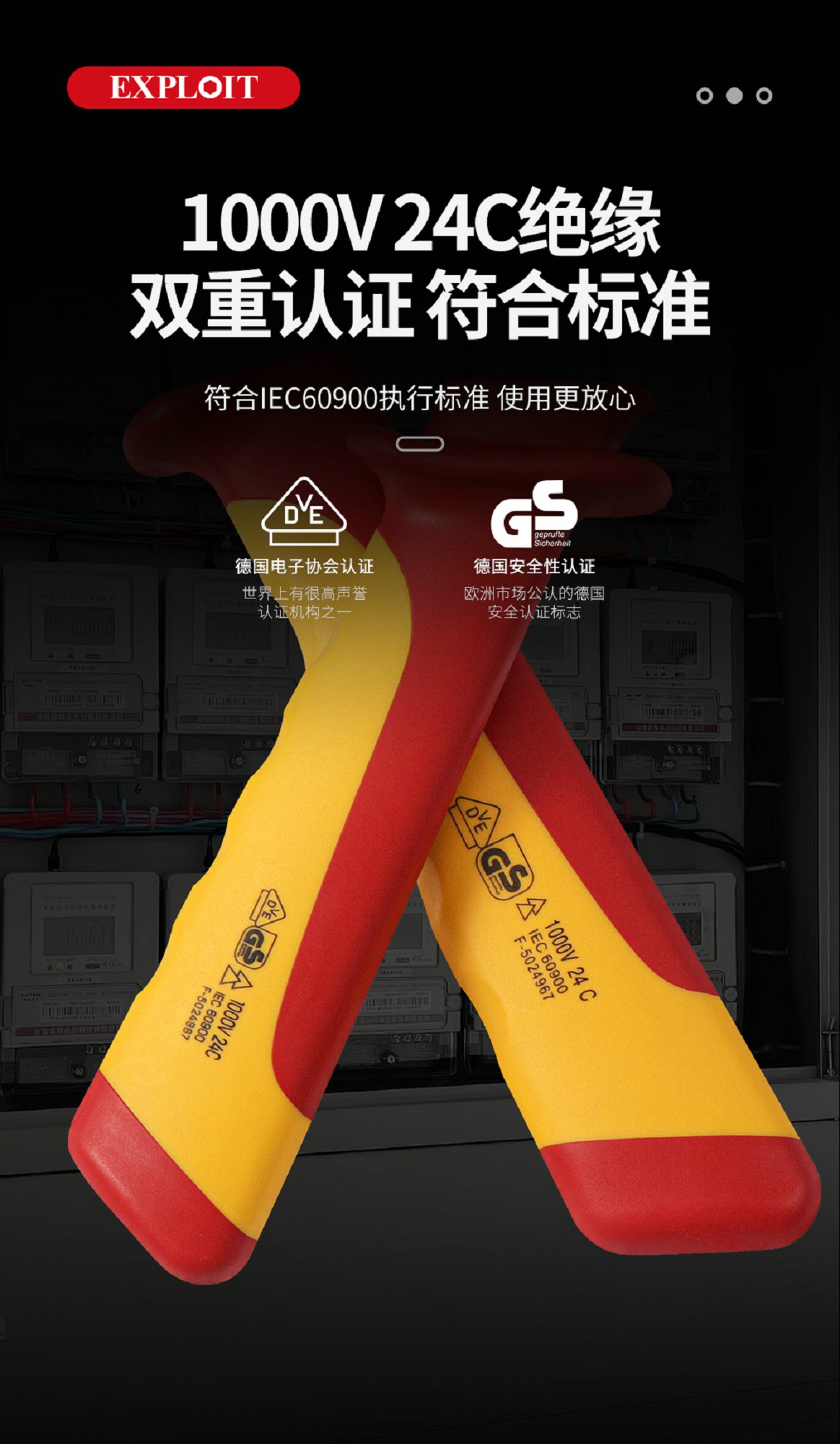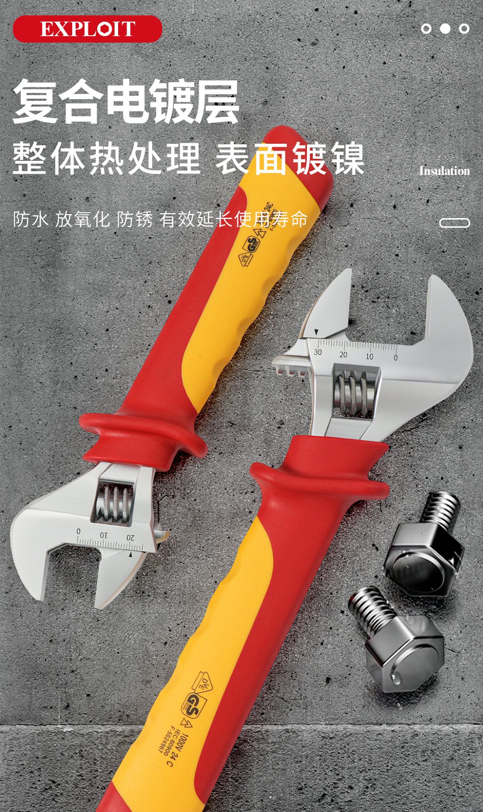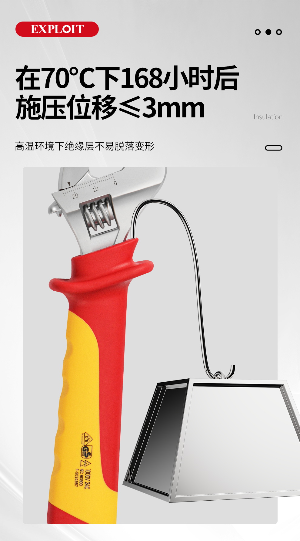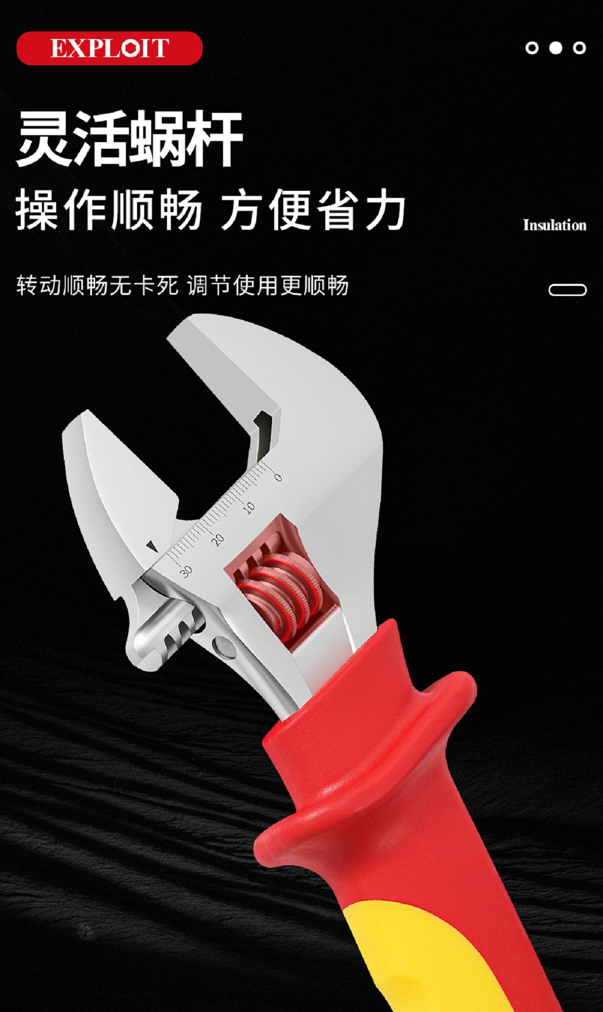 开拓 绝缘活络扳手1000V耐高压VDE认证电工专用8/10寸板子工具