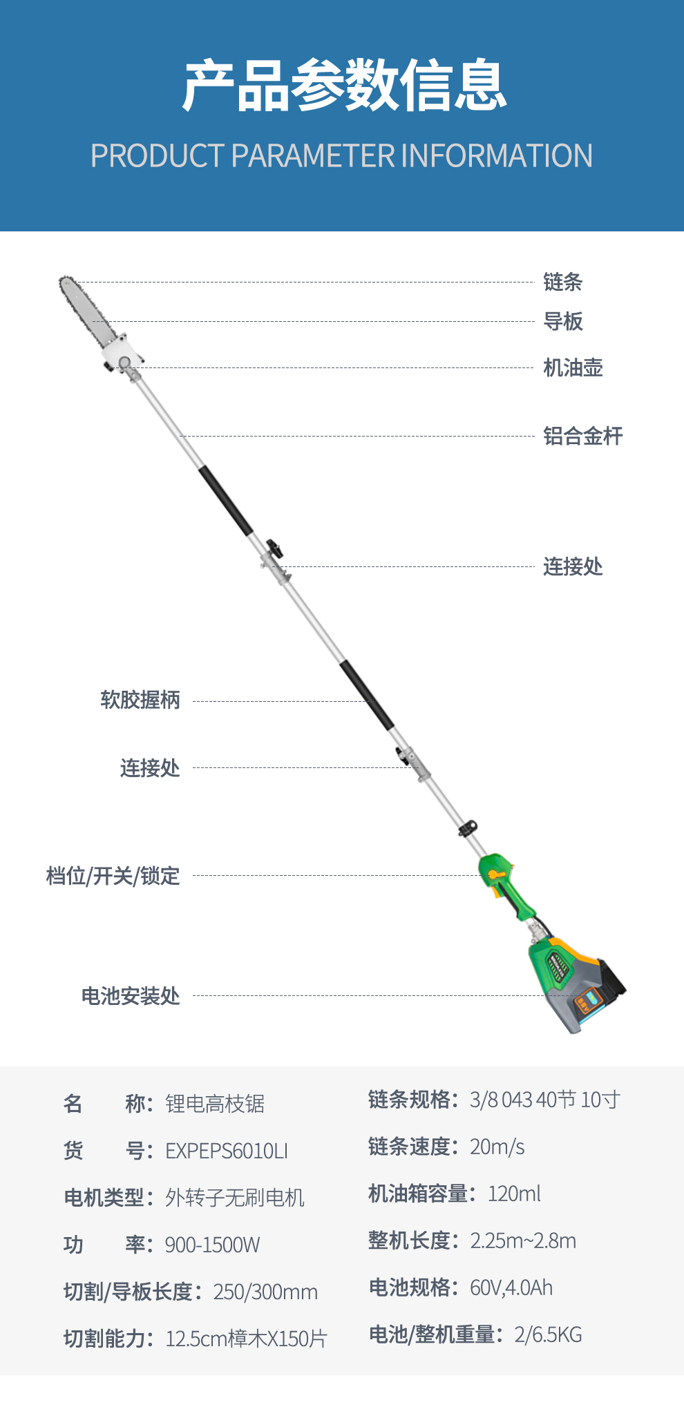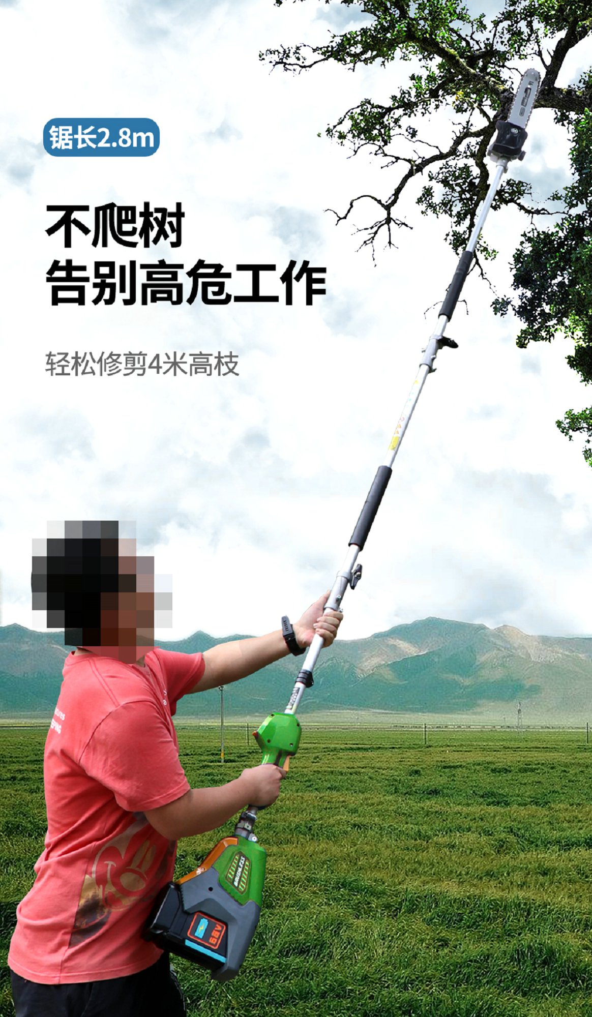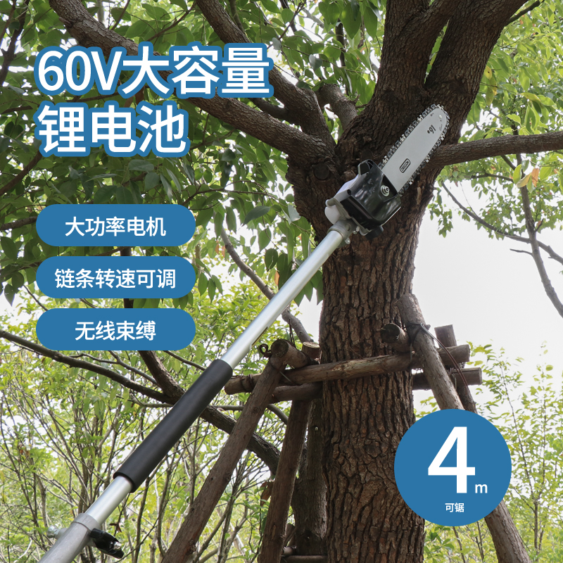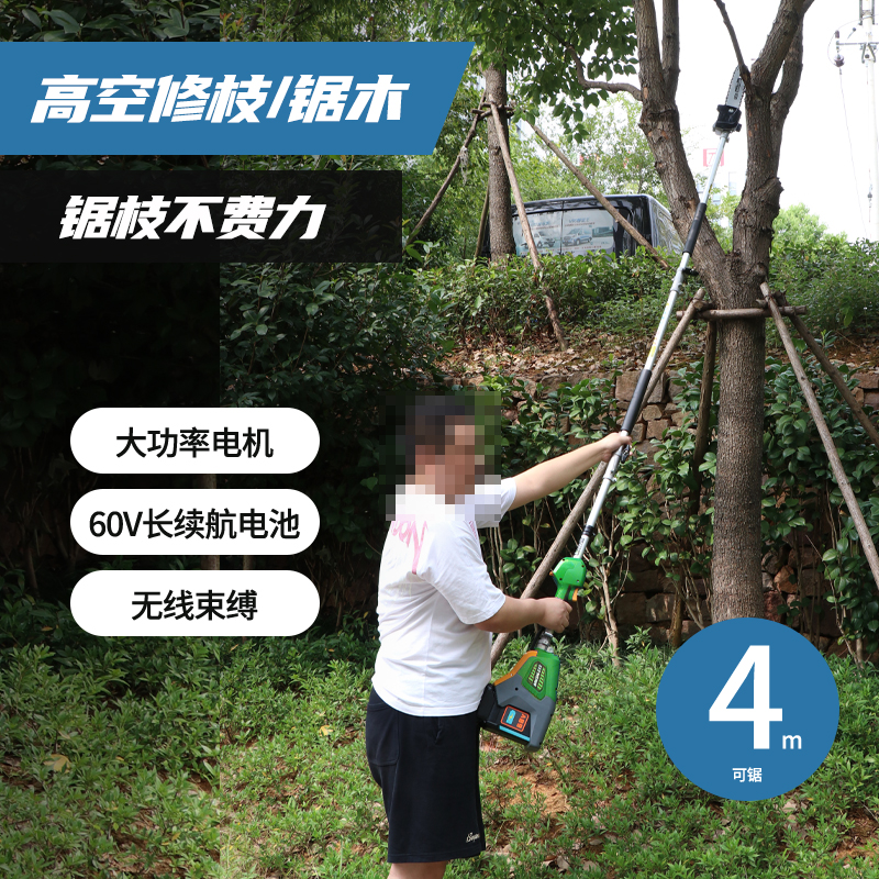 开拓电动锂电高枝锯60V大容量锂电池大功率电机高空修剪树枝