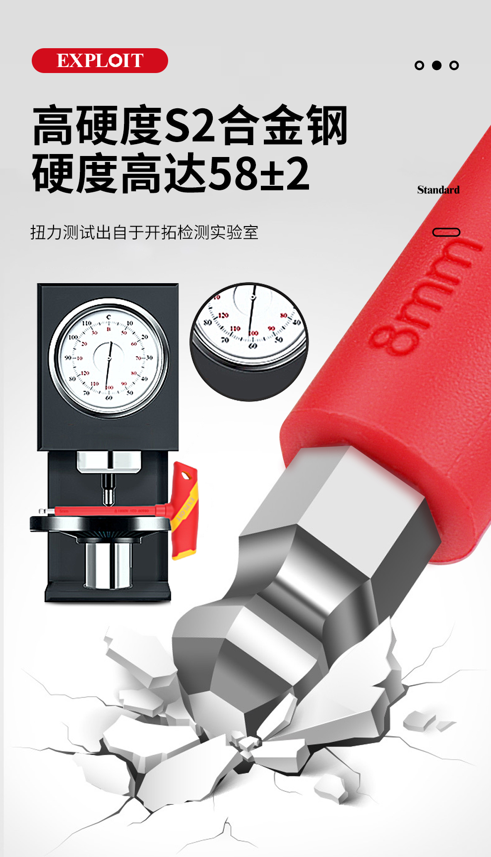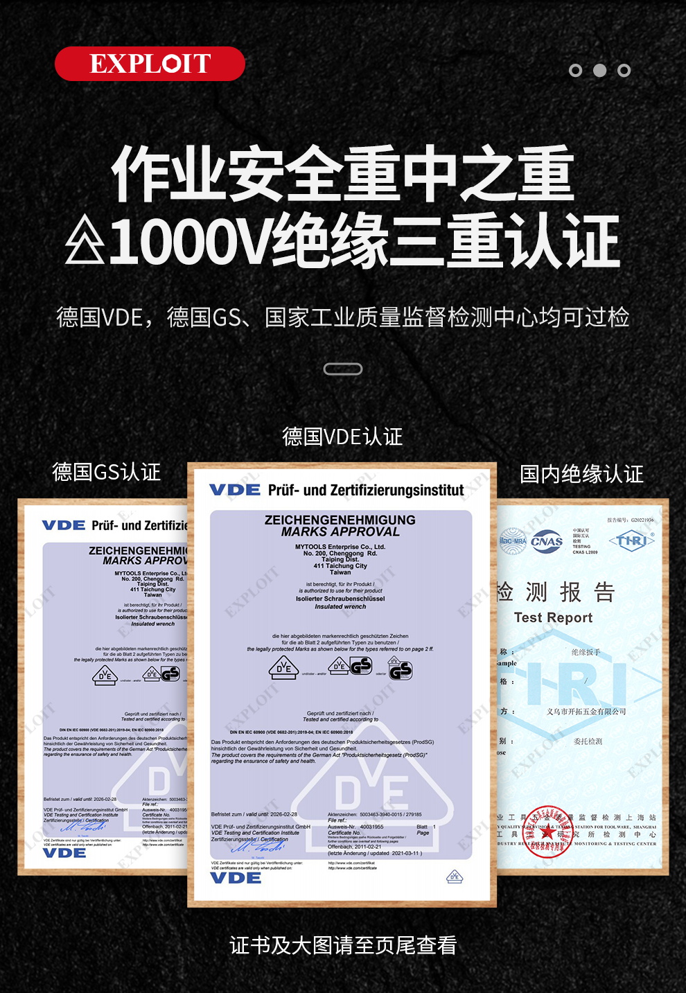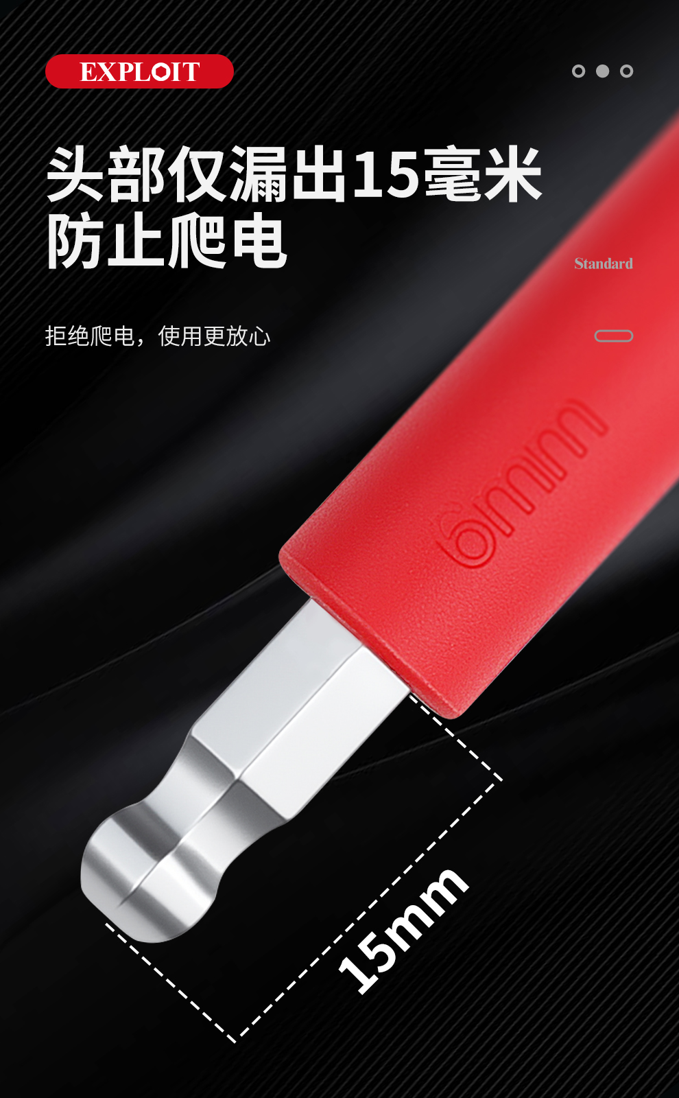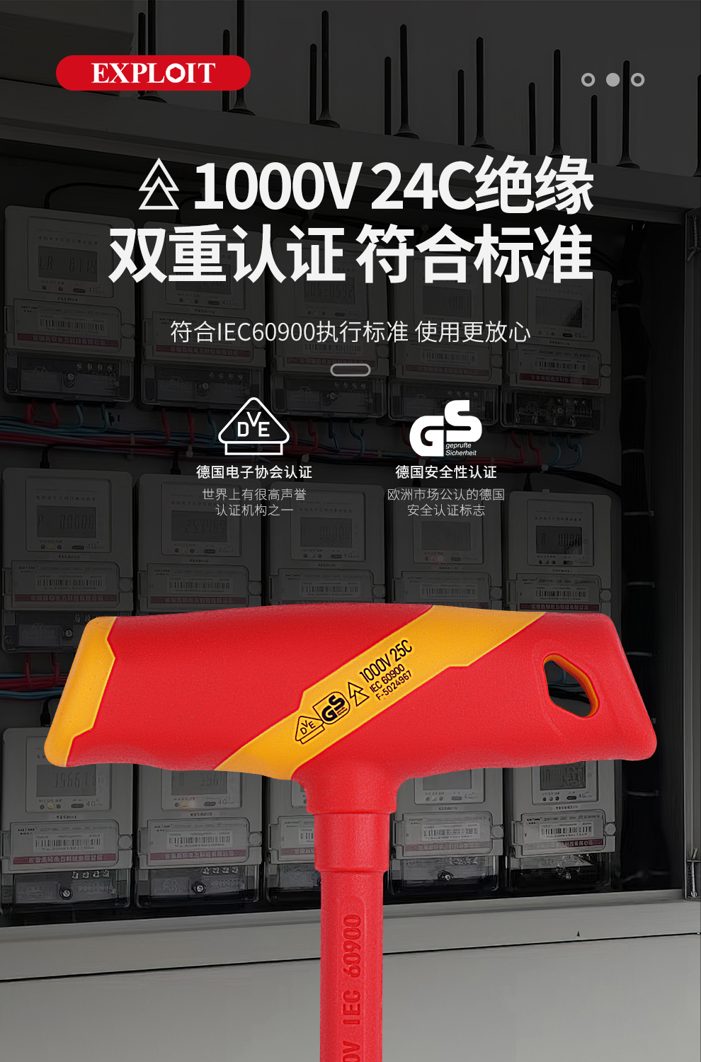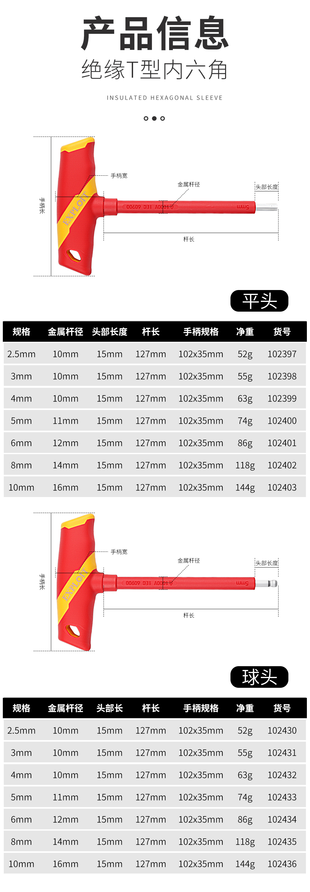 开拓绝缘T型内六角扳手1000V耐高压VDE认证高硬度合金钢维修工具